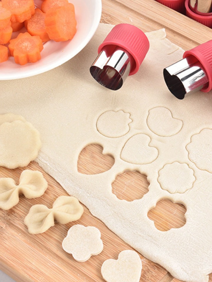 3pcs/set Random Color Vegetable Cut Mold, Stainless Steel Creative Cute Carrot Cutter, For Cooking Kids Food