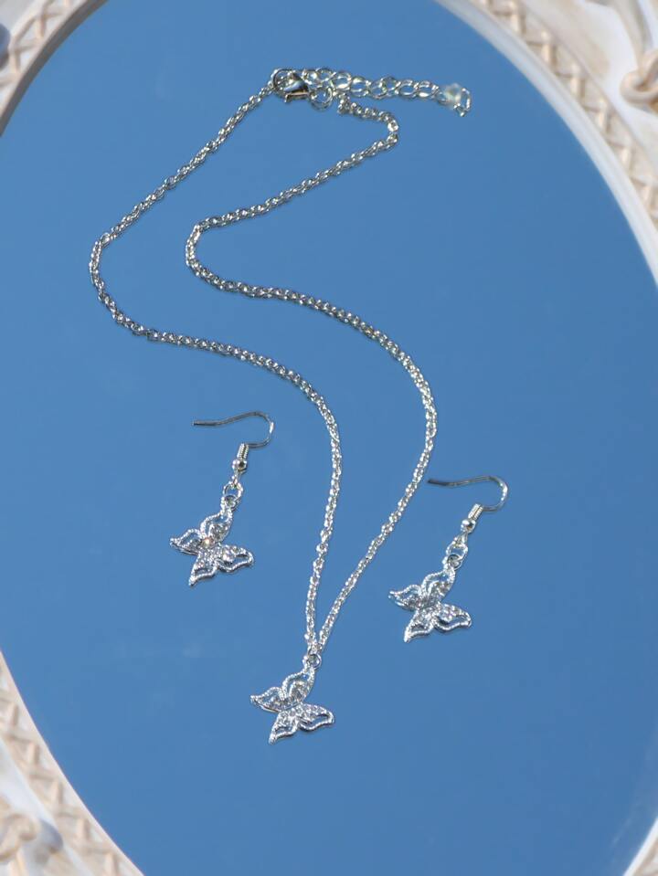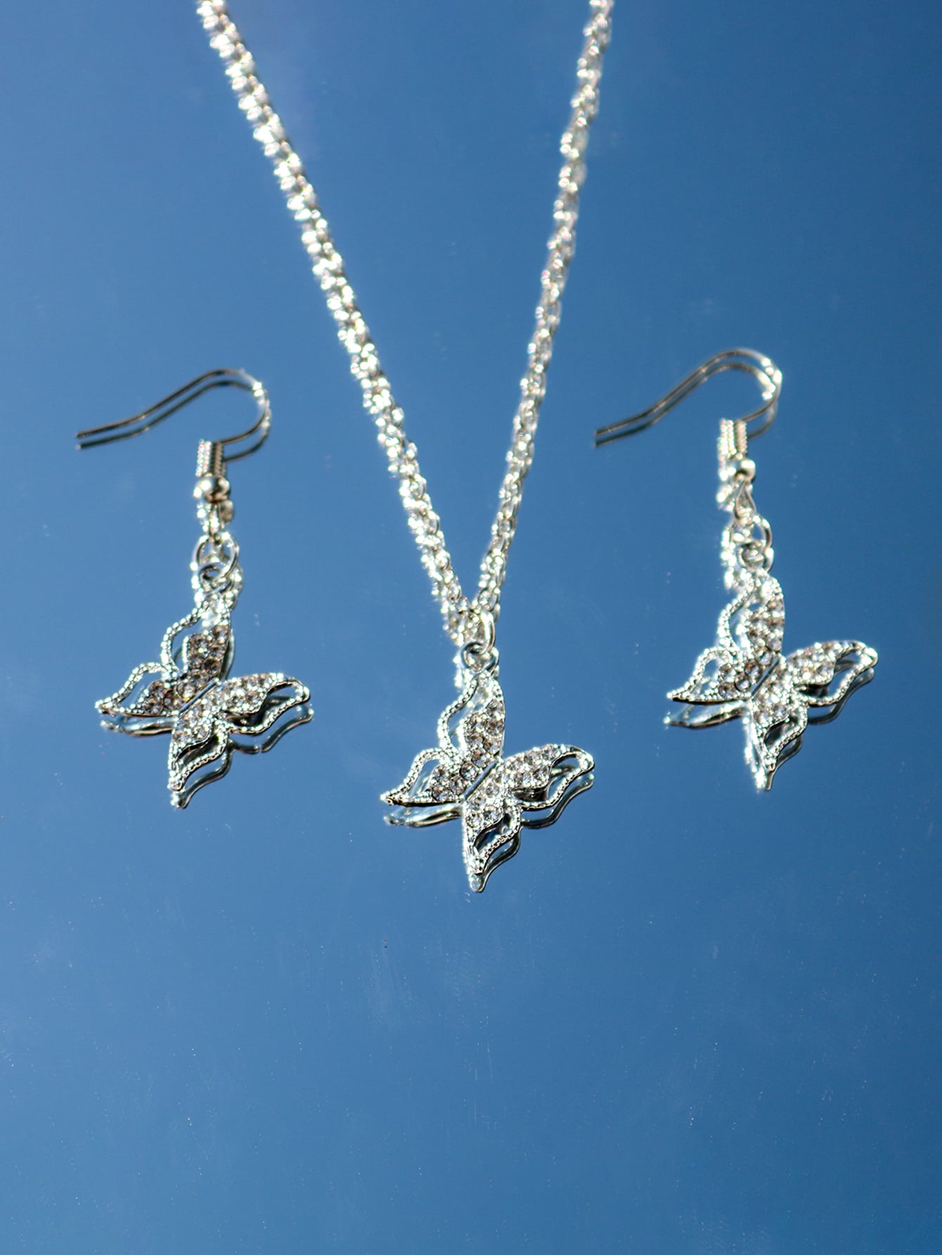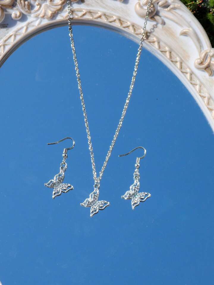 3pcs/set Rhinestone Butterfly Decor Jewelry Set