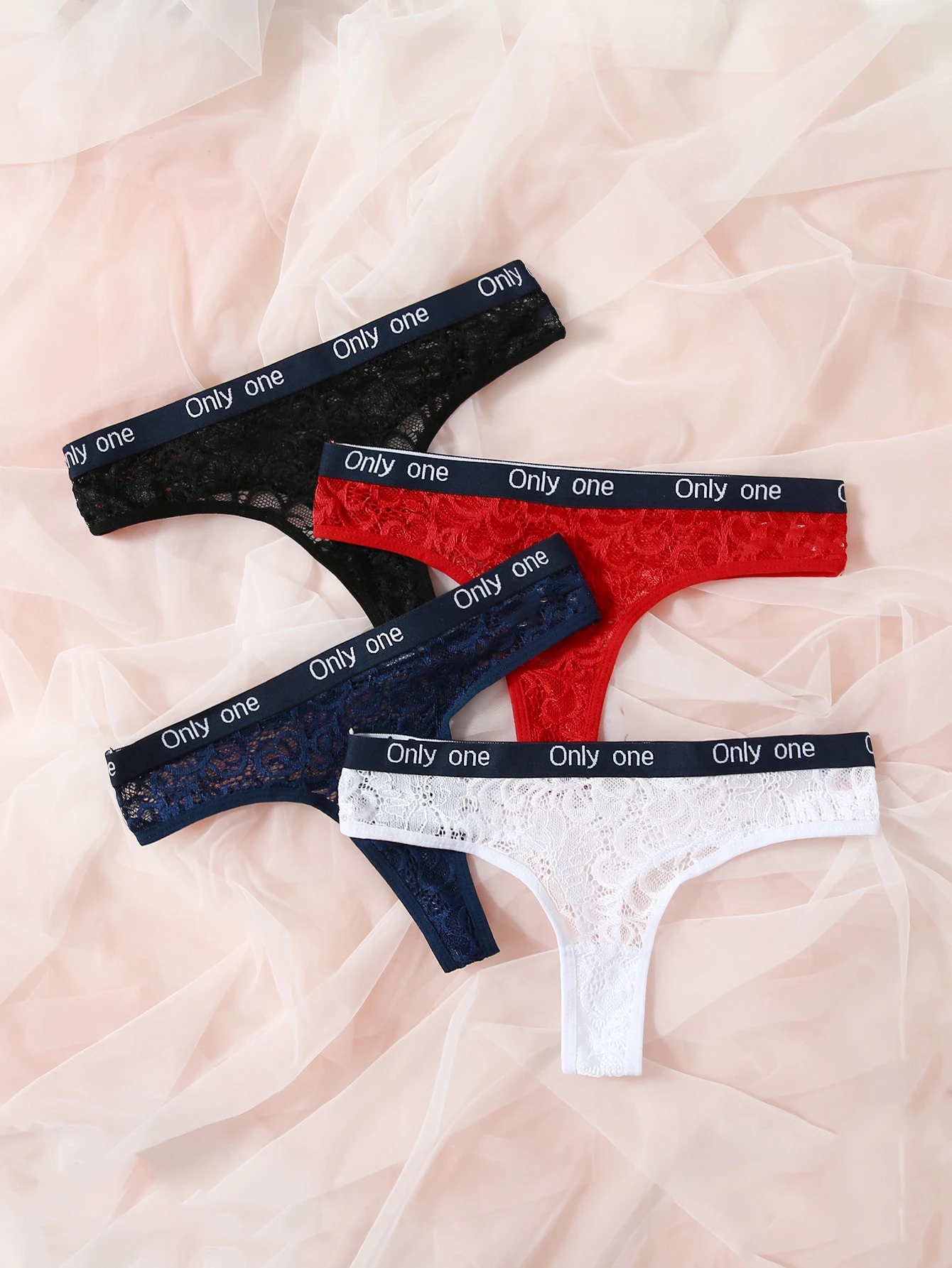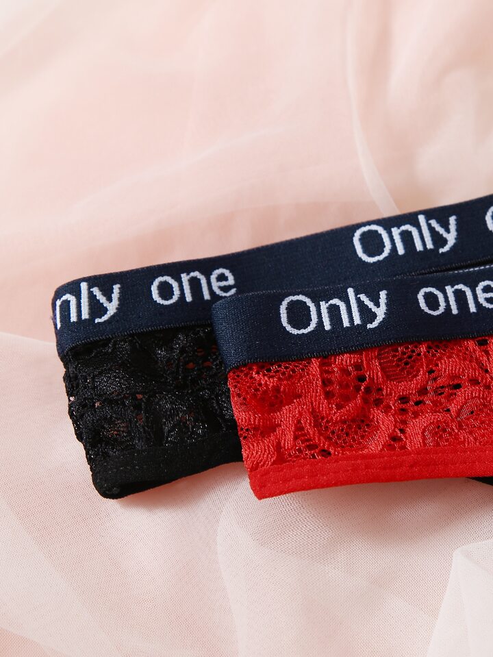 4pack Floral Lace Letter Tape Panty Set