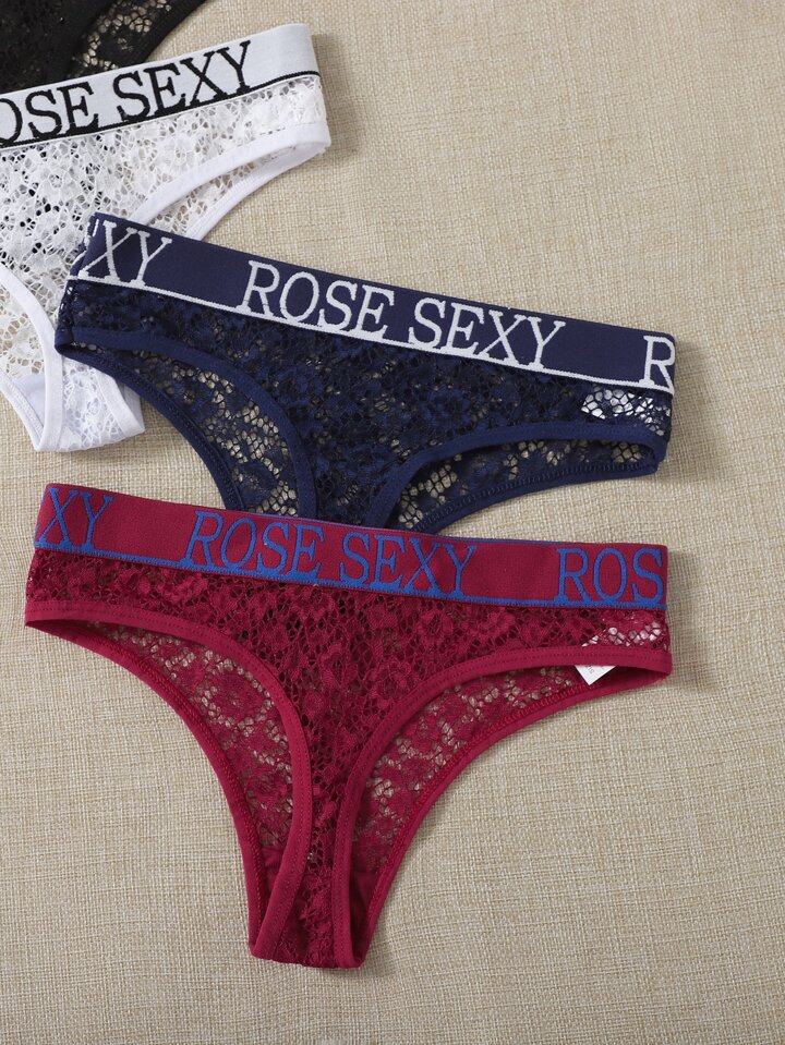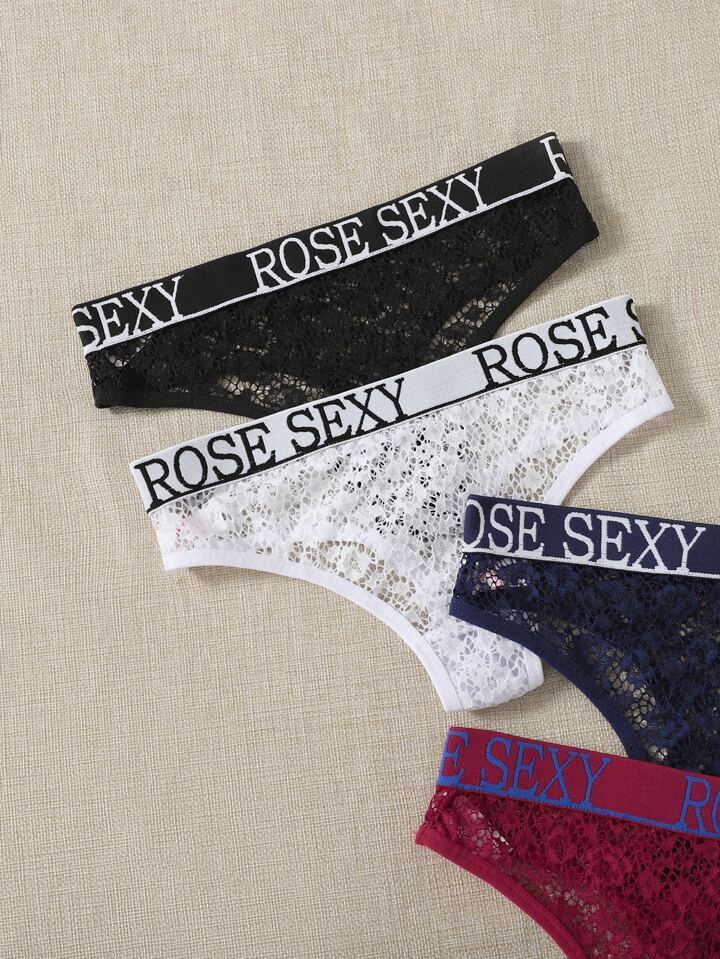 4pack Floral Lace Letter Tape Thong Set
