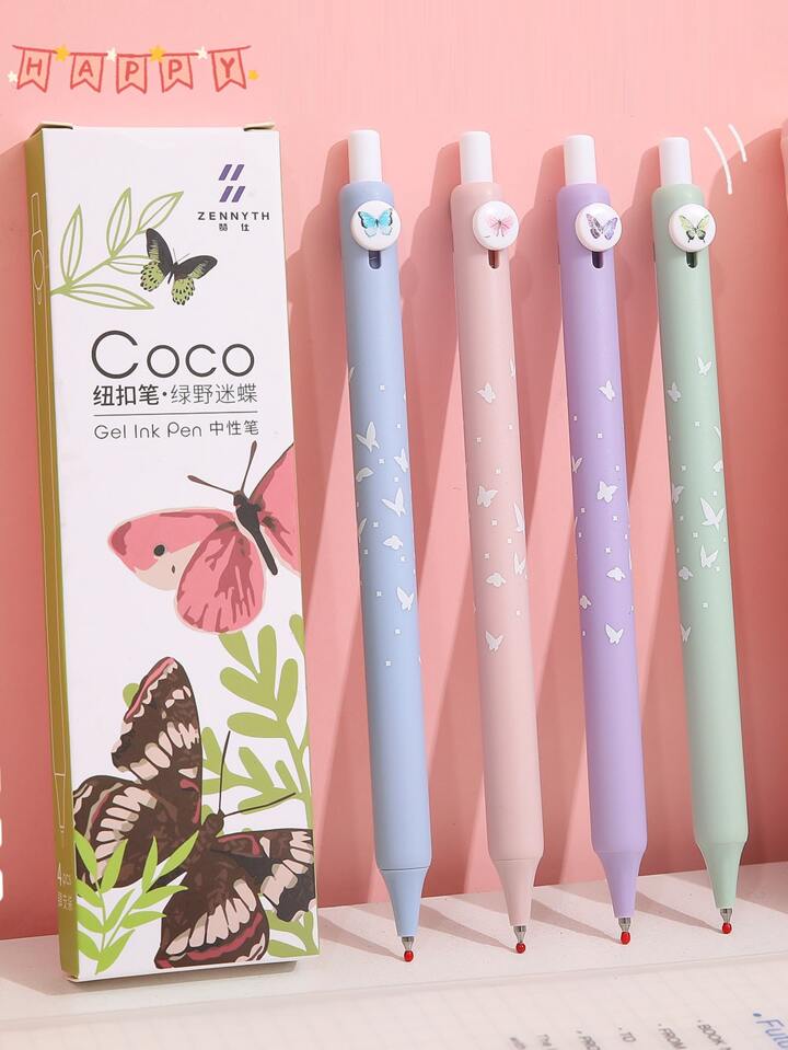 4pcs Butterfly Print Gel Pen