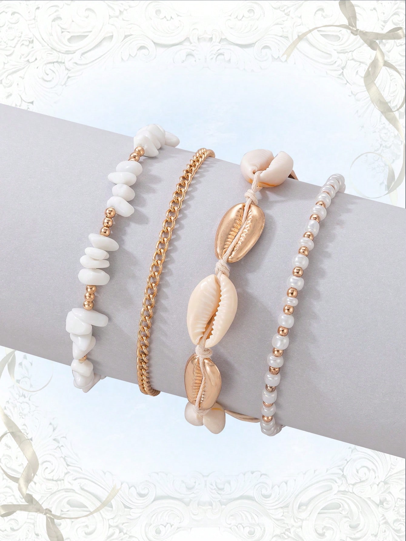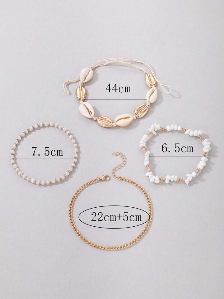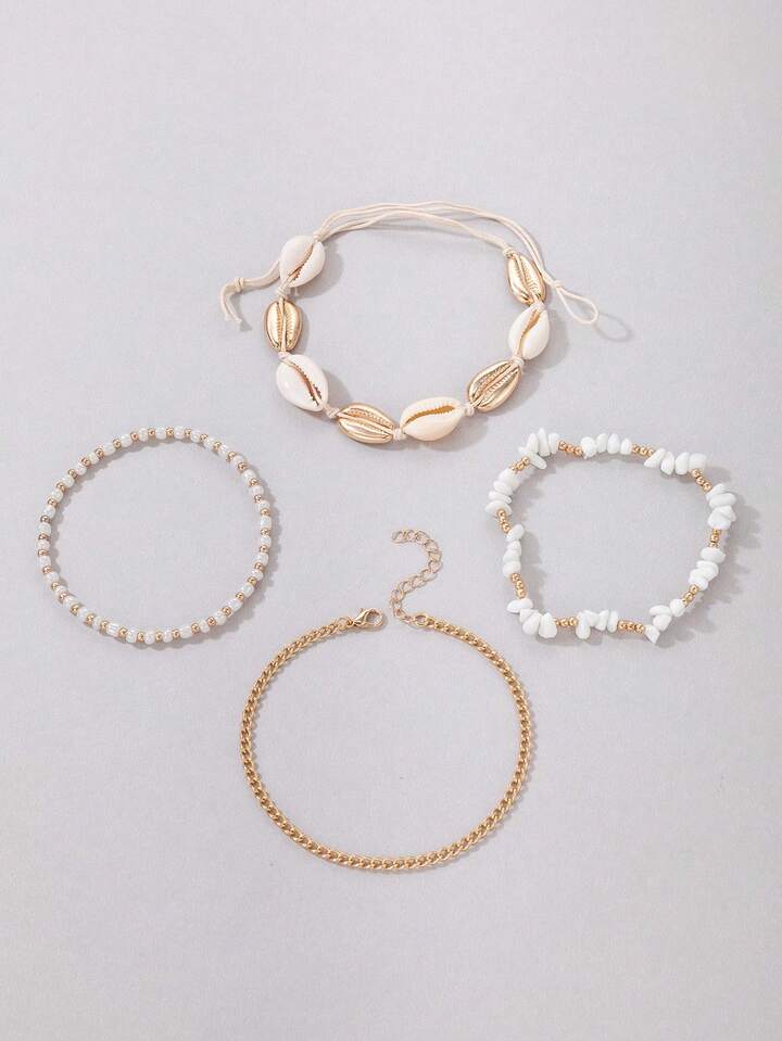 4pcs Fashion Zinc Alloy Shell Decor Anklet For Women For Dating Gift