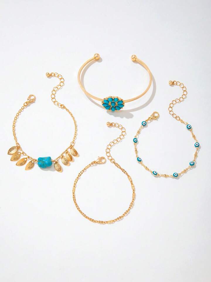 4pcs Fashion Zinc Alloy Turquoise & Flower Decor Bracelet For Women For Daily Decoration