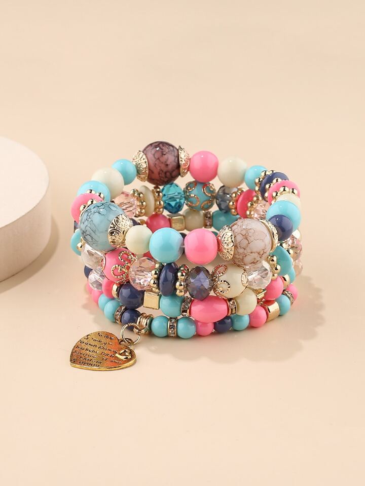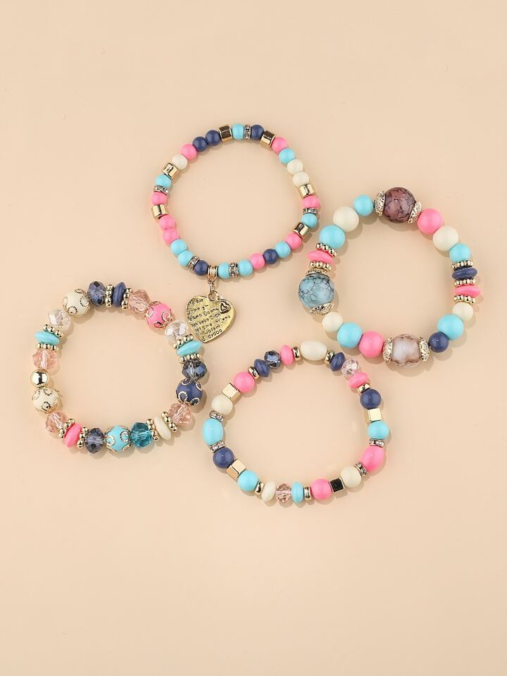 4pcs Heart Detail Beaded Bracelet