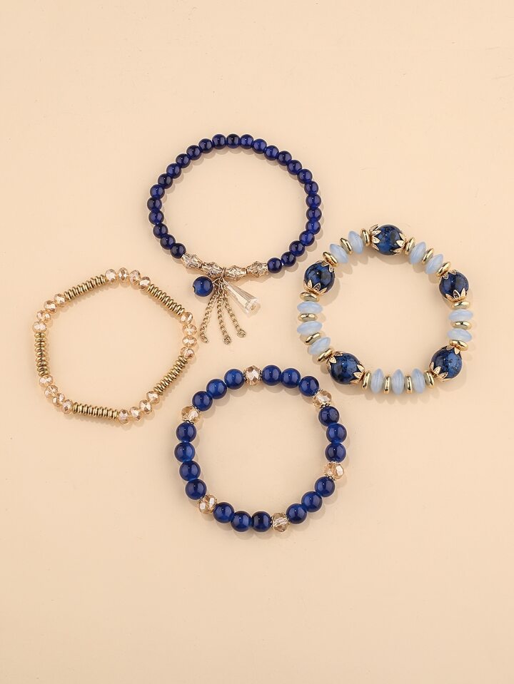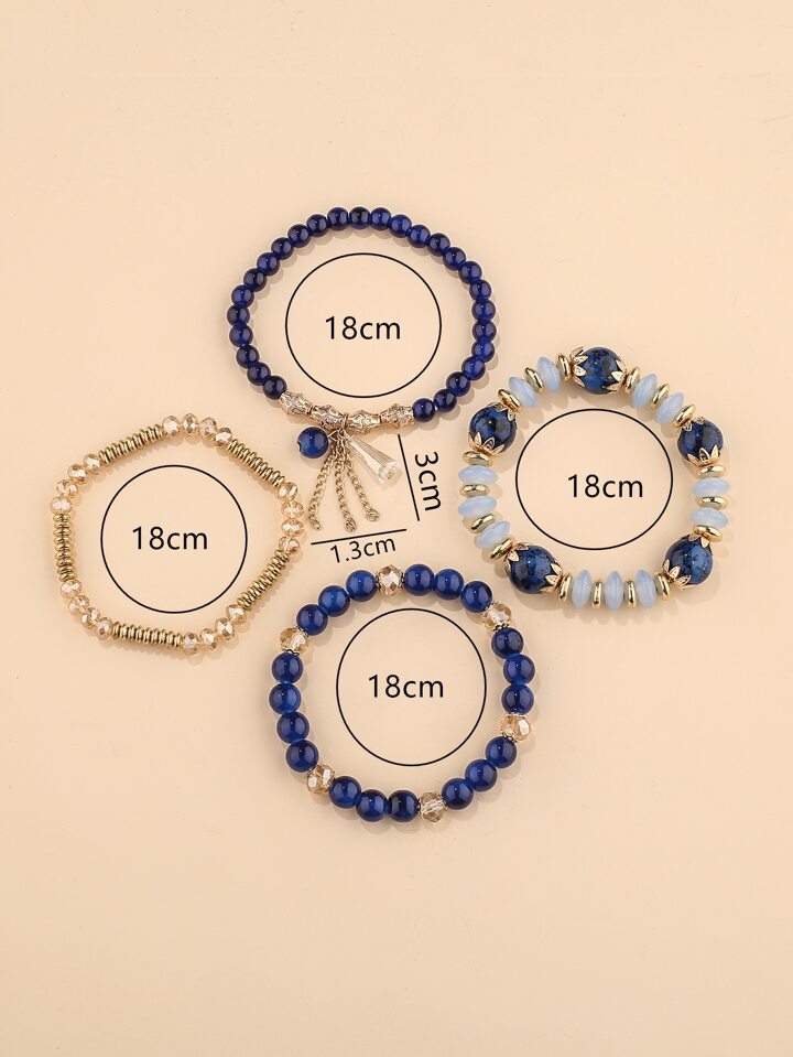 4pcs/Set Random Crystal Beaded Bracelet Boho Faux Agate Faux Pearl Tassel Chain Charm Beaded Bracelet Jewelry Gift For Women