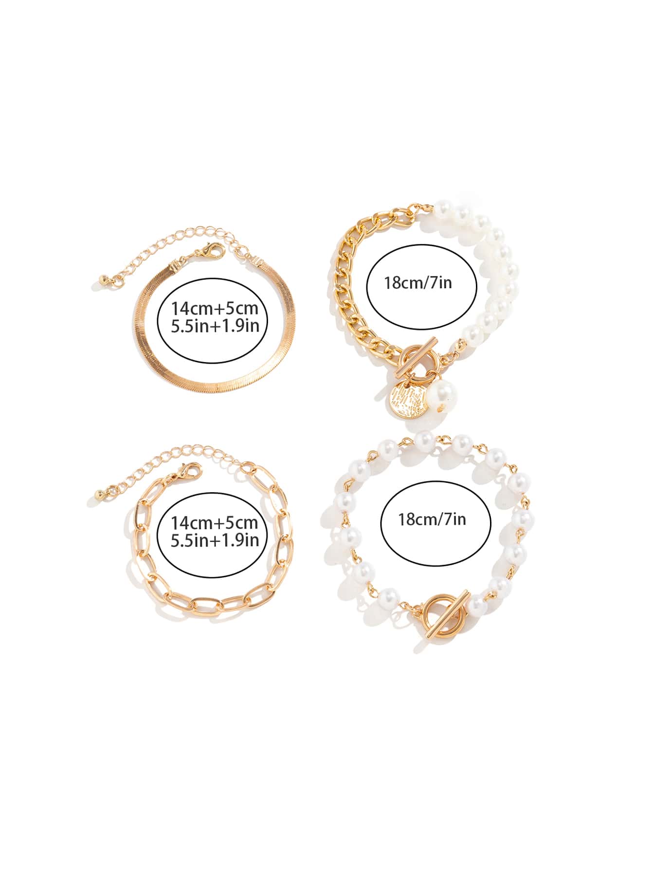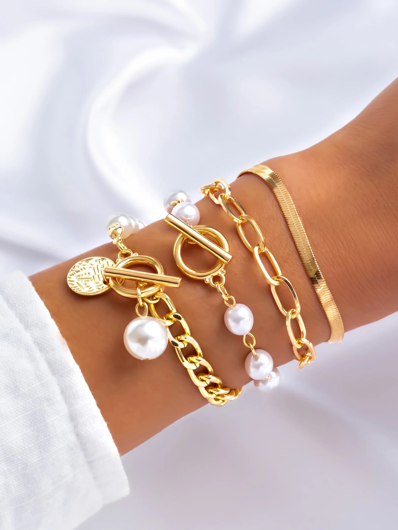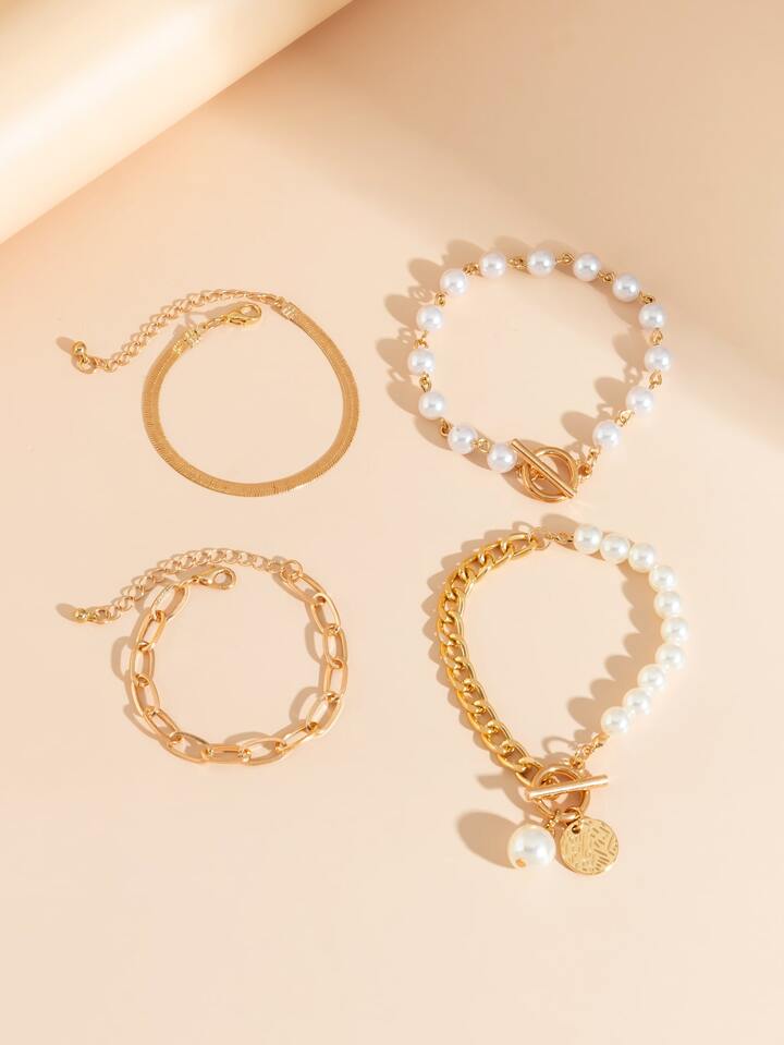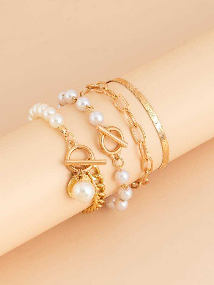 4pcs/set Faux Pearl & Round Decor OT Buckle Bracelet