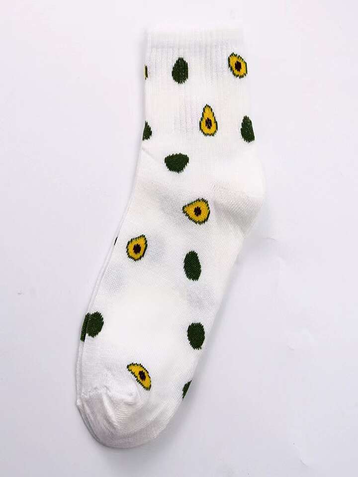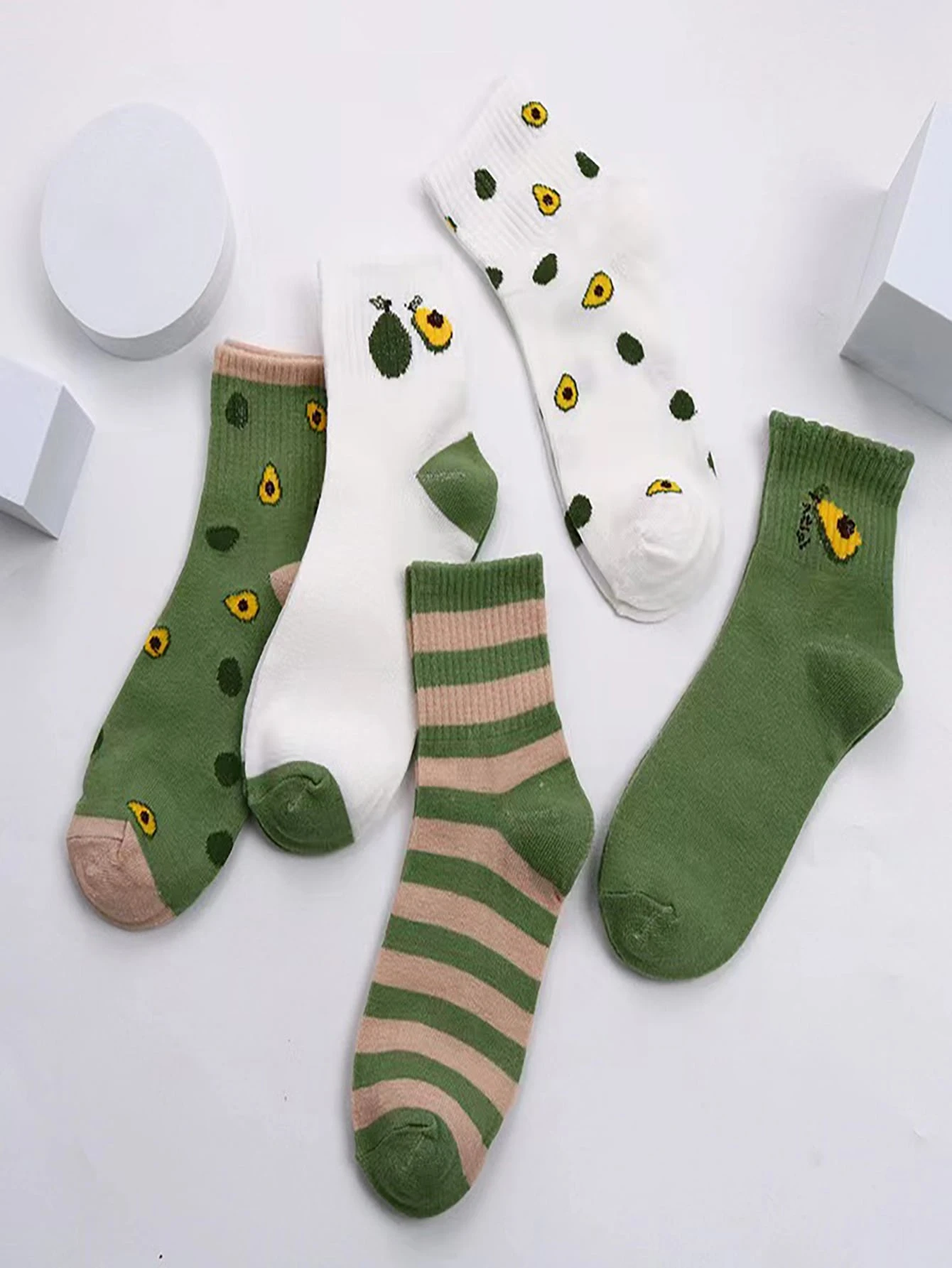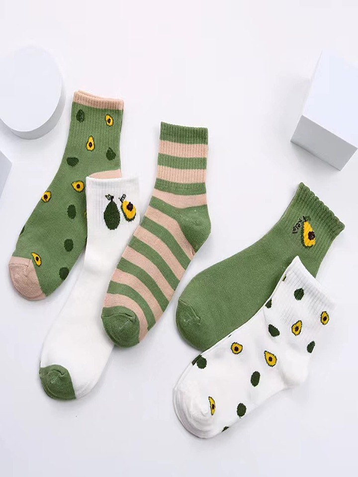 5pairs Women Avocado Print Fashion Style Crew Socks