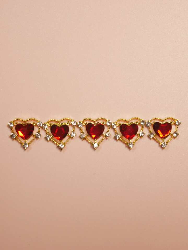 5pcs 3D Rhinestone Heart Design Nail Art Decoration