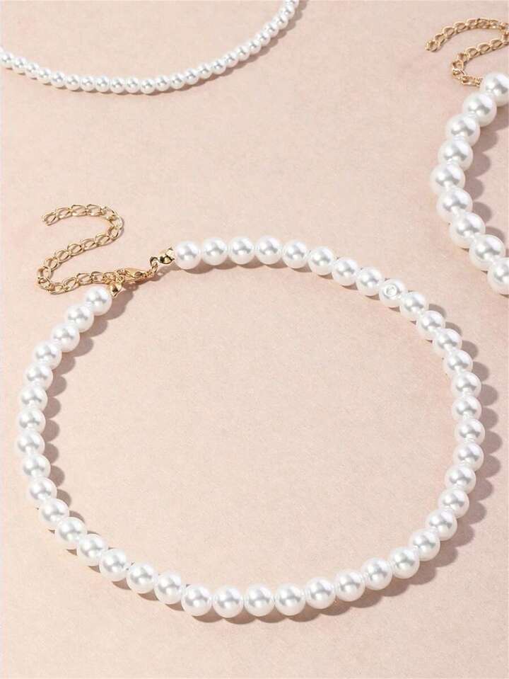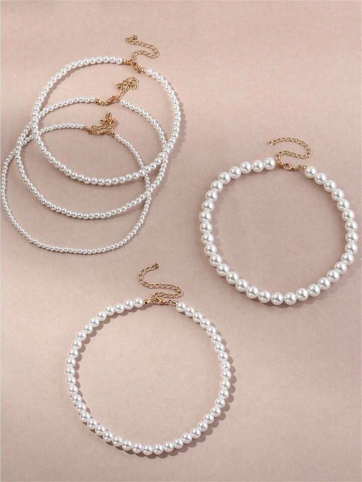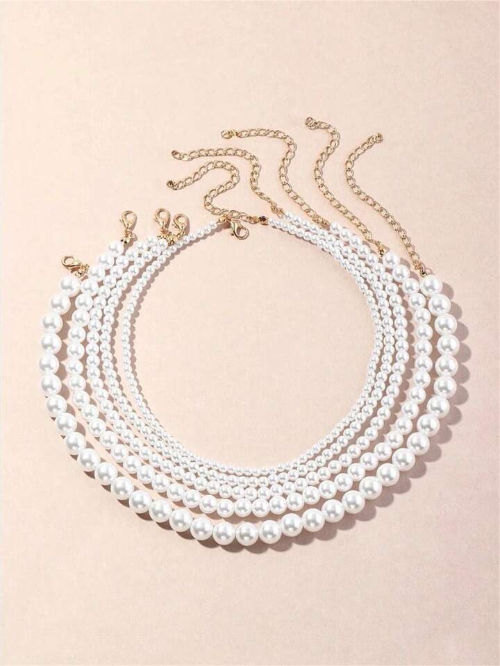 5pcs Elegant Faux Pearl Decor Necklace For Women For Dating Gift