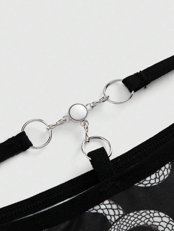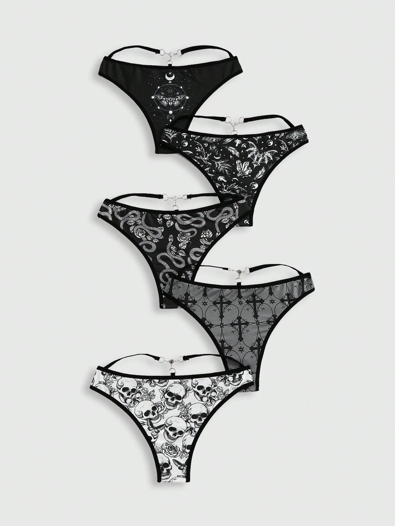 5pcs Gothic Skull, Snake, Mushroom, Bat, Cross Print Women's Plus Size Bikini Brief Underwear