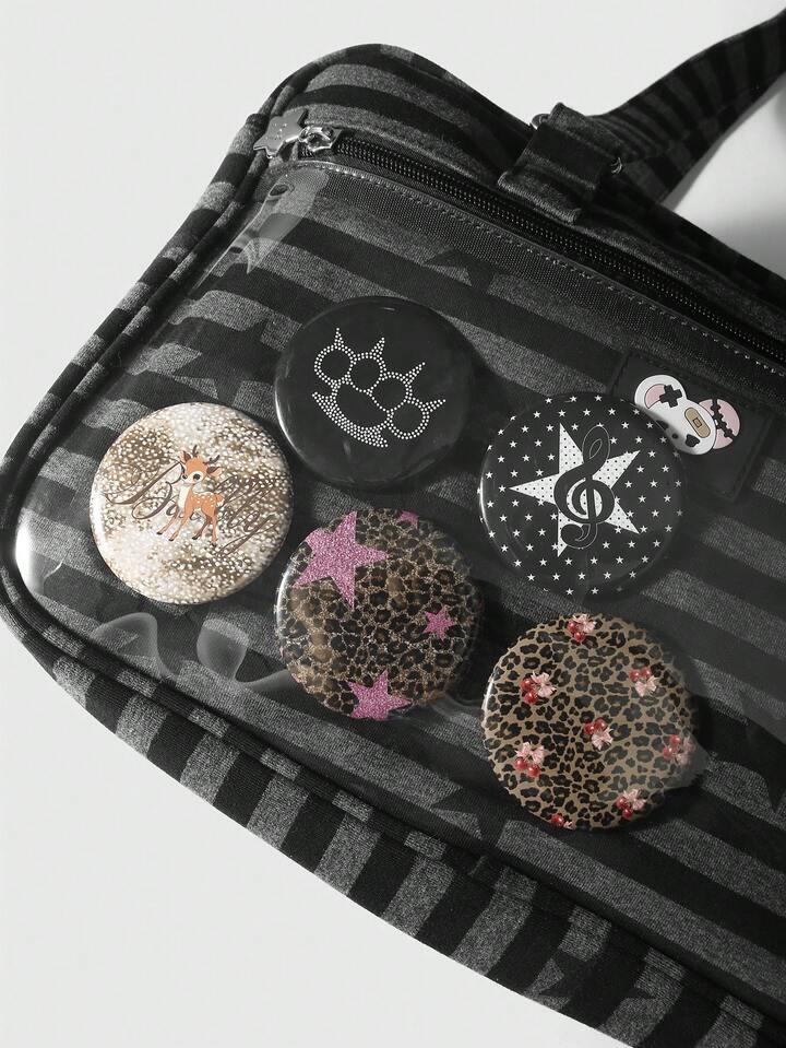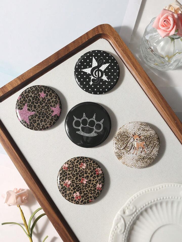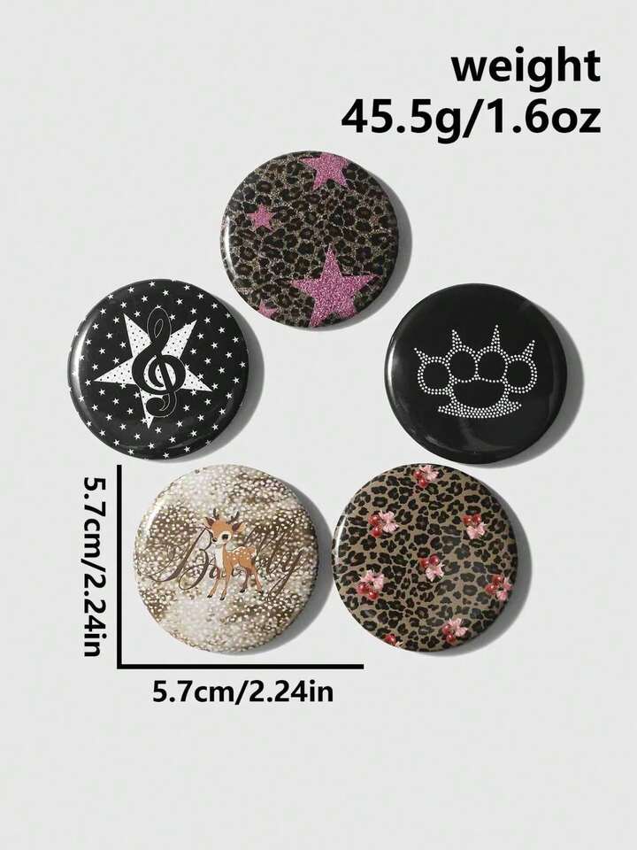 5pcs Y2K Retro Edgy Chic Fashion High-Quality Dark Goth Style Badges: Brown/Black&White/Purple Leopard Print, Deer Print, Cartoon Deer, Star, Cherry, Polka Dot, Music Note, Bear Paw, Cat Paw, Silver Brooch Pins Combo Set, Suitable For Sisters, Best Friends, Women, Daily Wear, Holiday Gifts