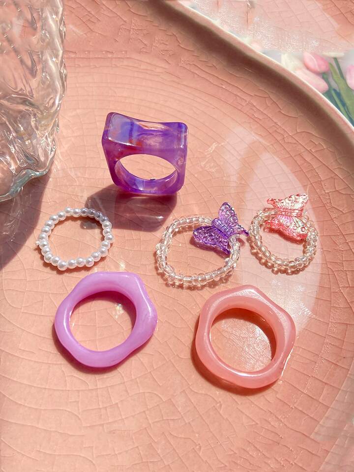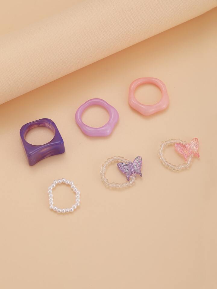6pcs/set Butterfly & Faux Pearl Decor Ring