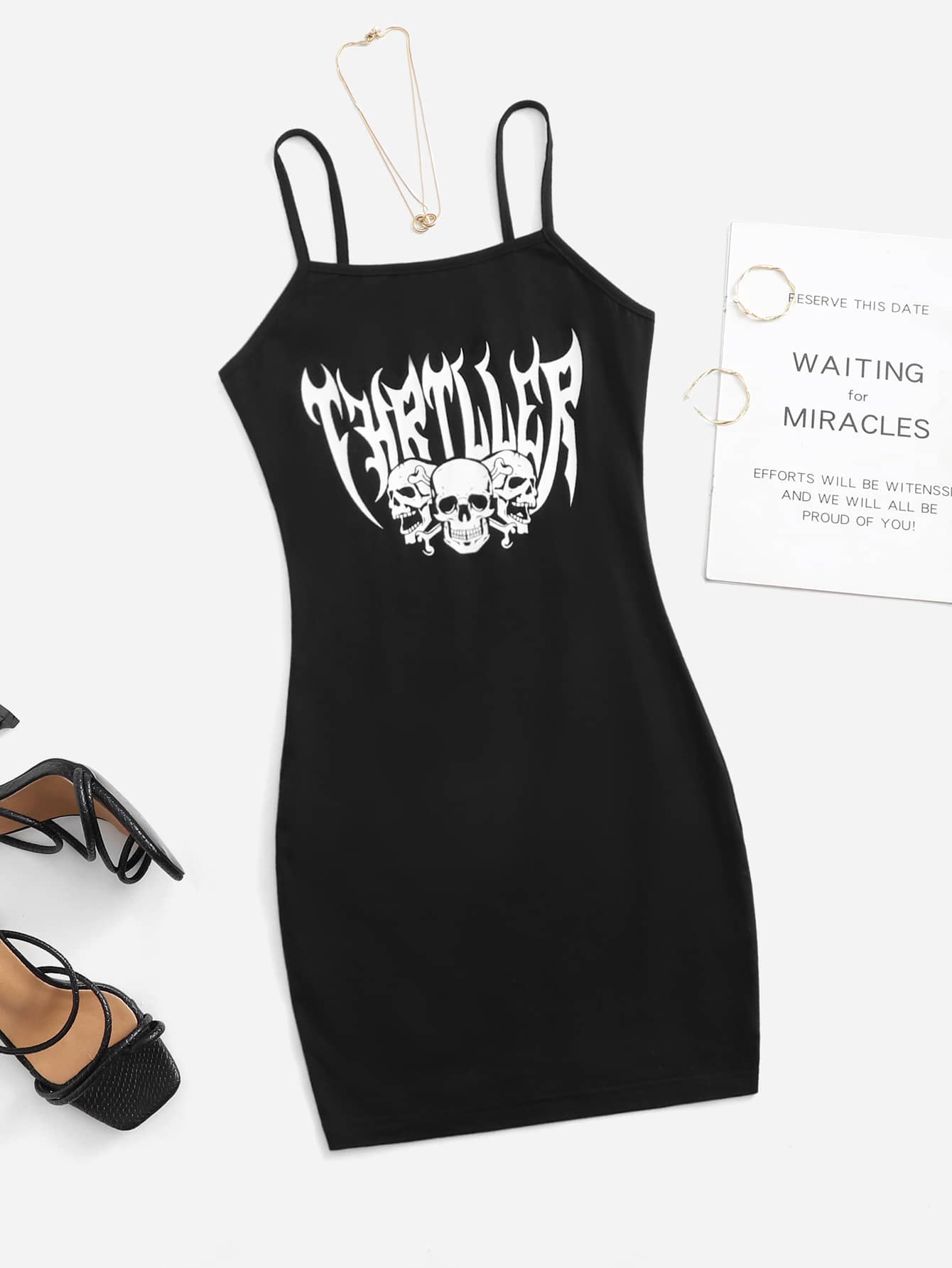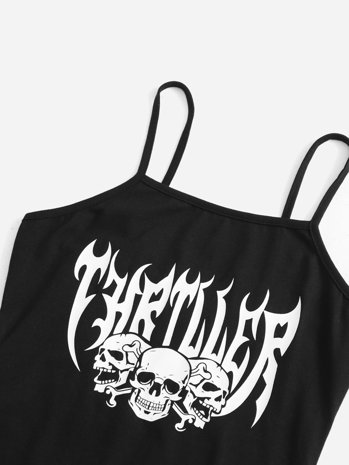 90s Letter & Skull Print Cami Dress