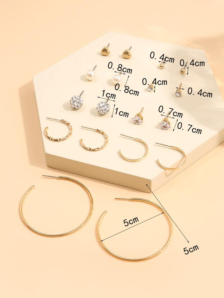 9pairs Fashion Rhinestone & Faux Pearl Decor Earrings For Women For Daily Decoration