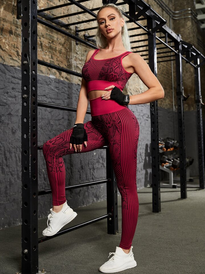 Absorbs Sweat Snakeskin Print Bra & Leggings Sports Set