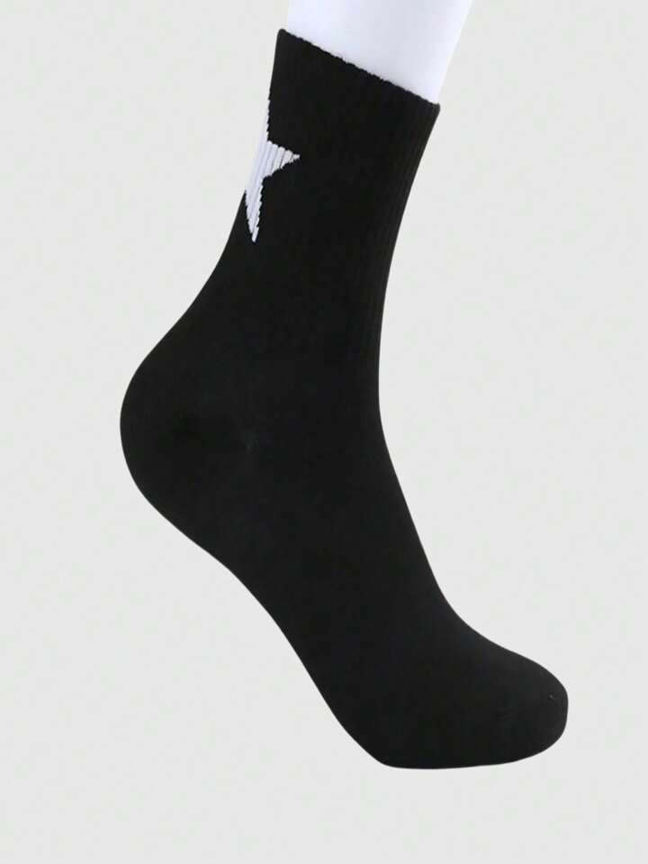 Academia 1 Pair Versatile Couple Black Star Print Mid-Calf Socks