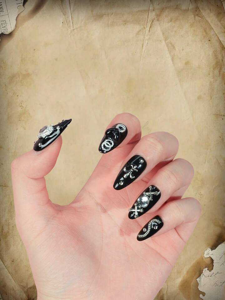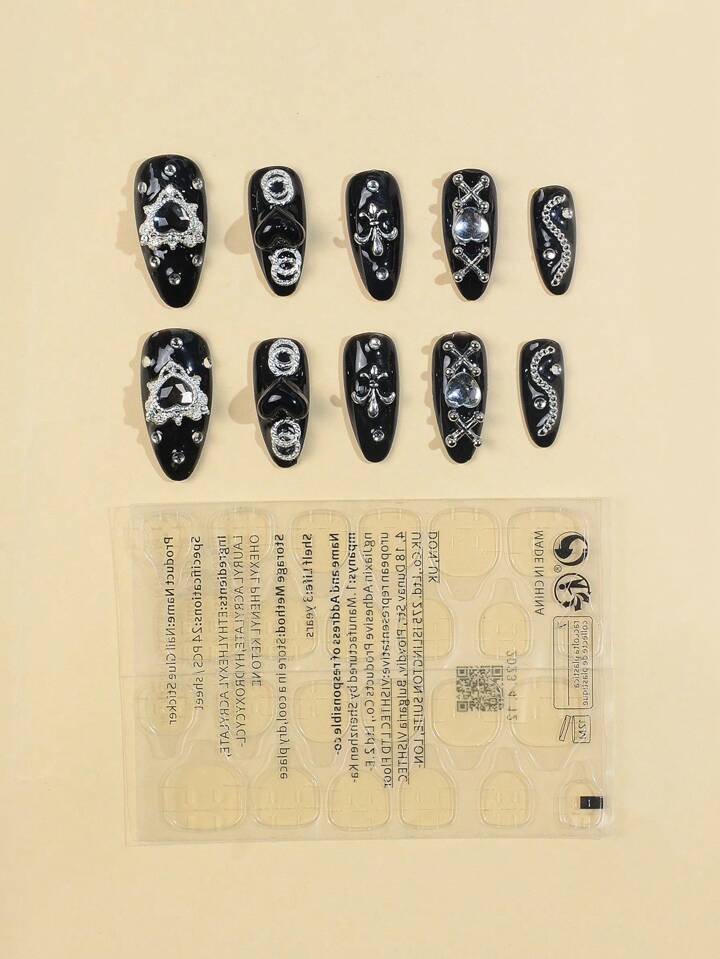 Academia 10pcs Long Almond Heart Pattern Fake Nail Kit