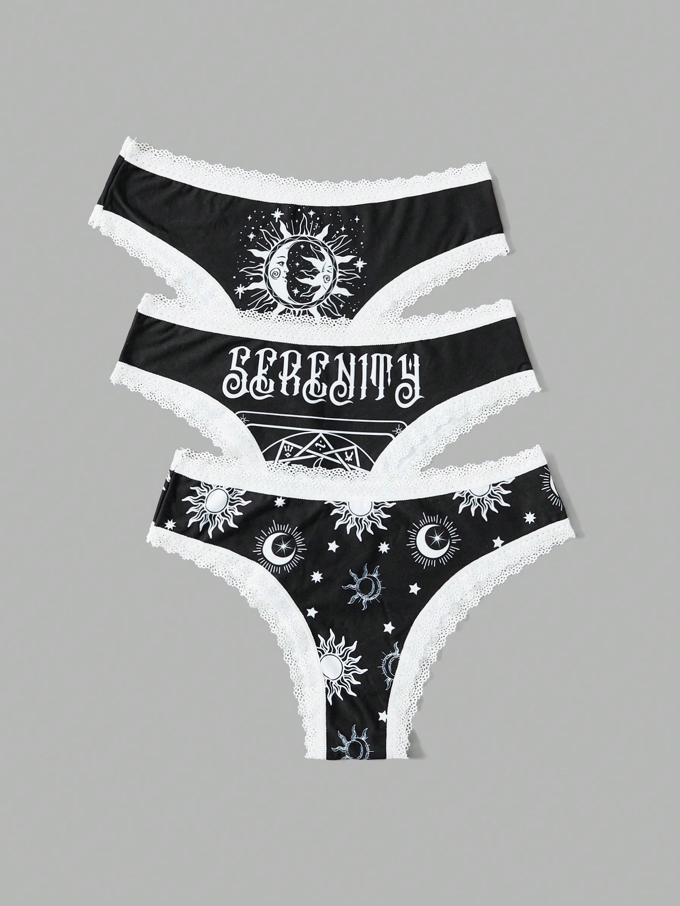 Academia 3pack Sun & Moon Graphic Contrast Lace Brief