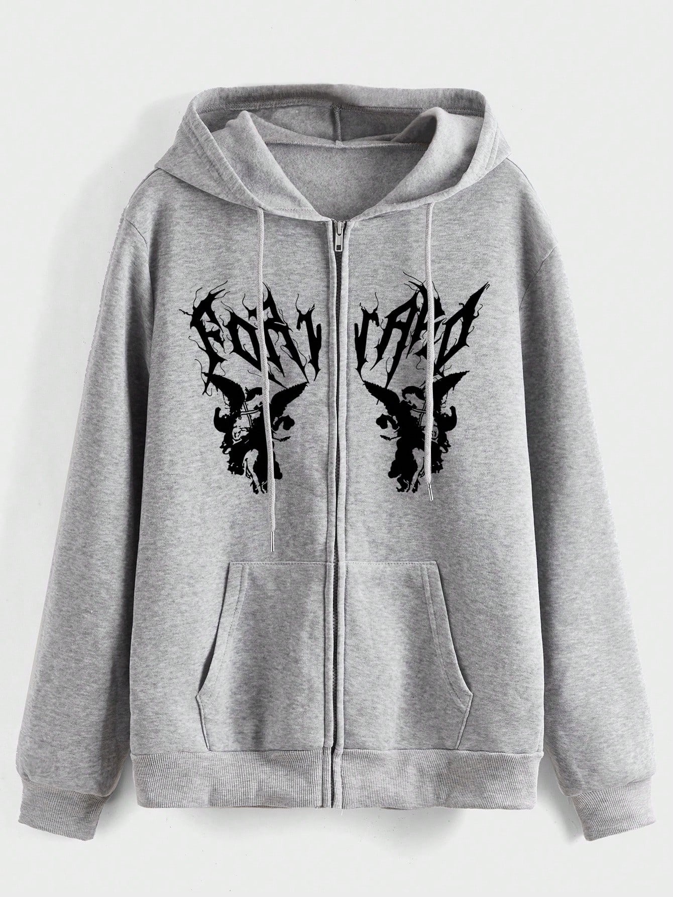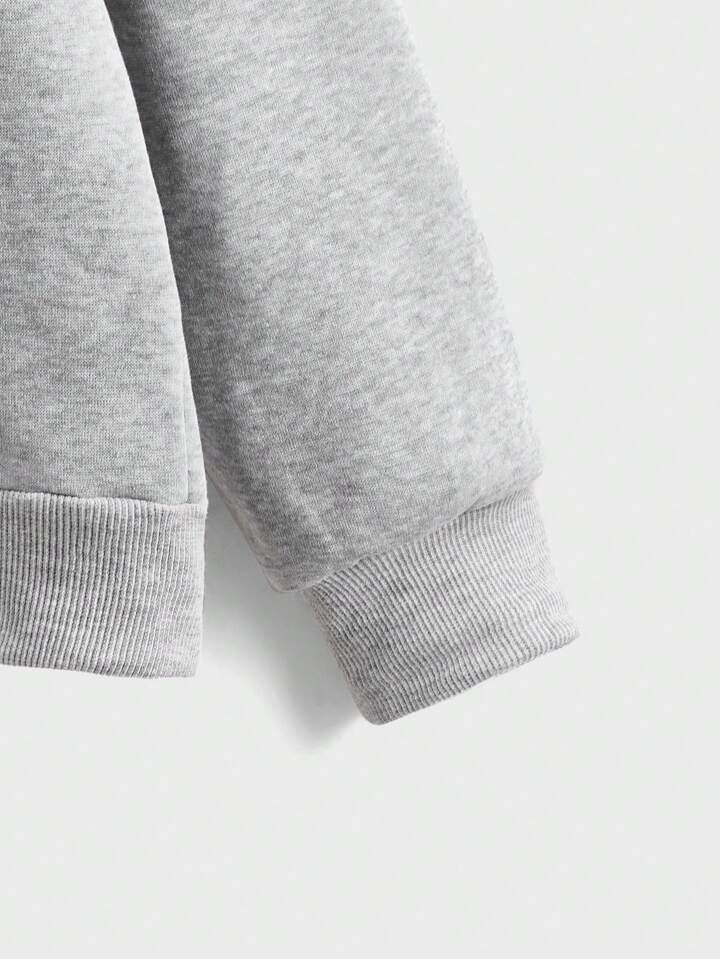 Academia Guys Letter Graphic Zip Up Thermal Lined Drawstring Hoodie