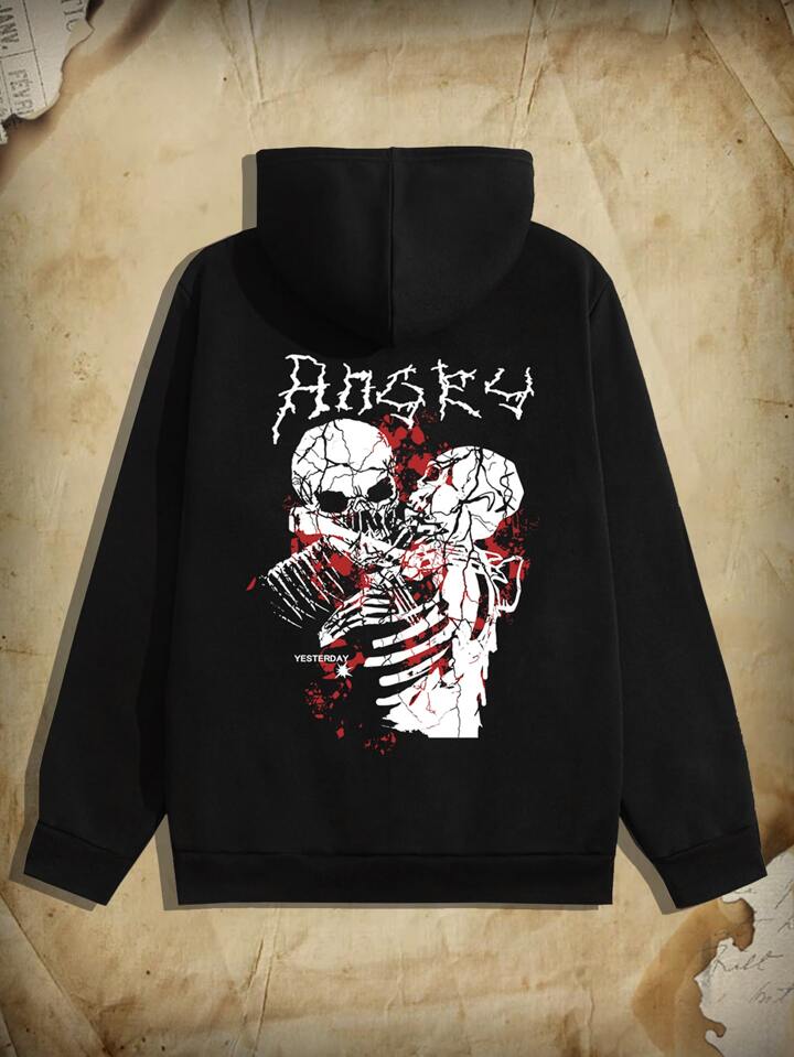 Academia Guys Skull And Letter Graphic Drawstring Thermal Hoodie