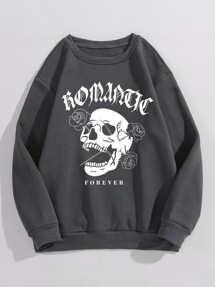 Academia Letter & Skull Print Thermal Lined Sweatshirt