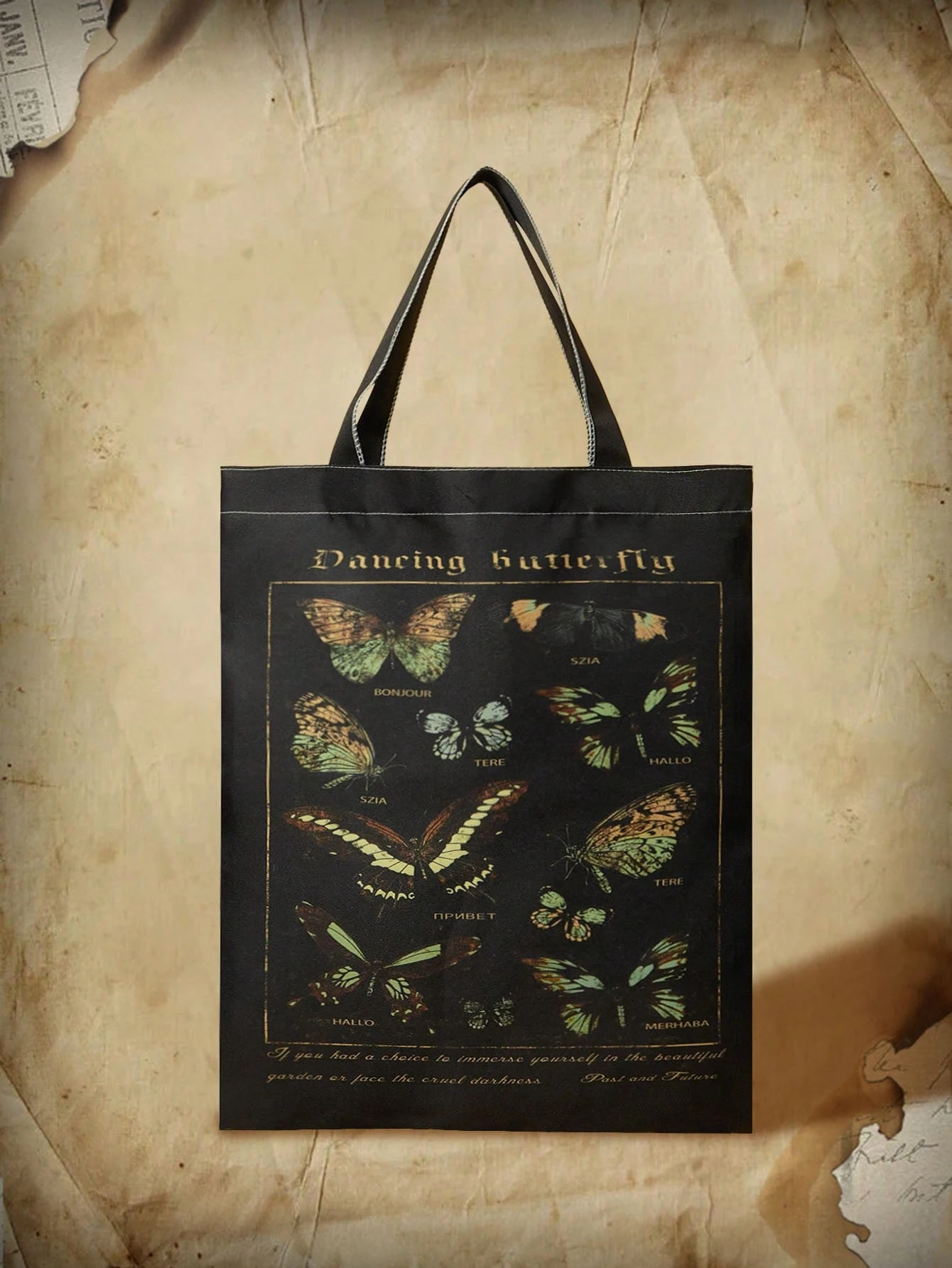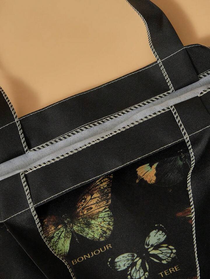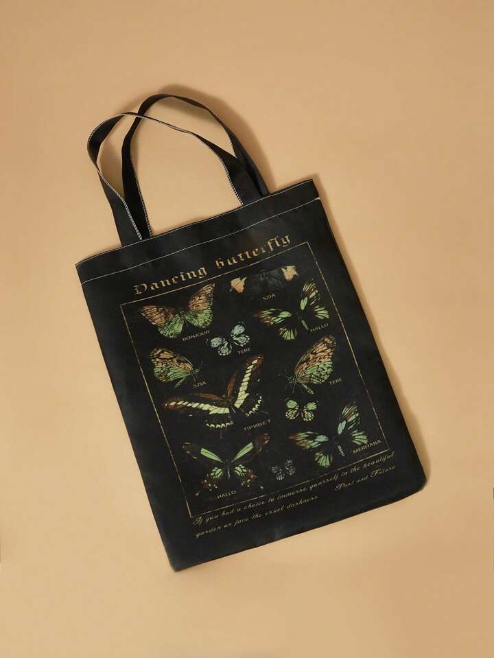Academia Oversized Shopper Bag Boho Letter Butterfly Graphic For Shopping