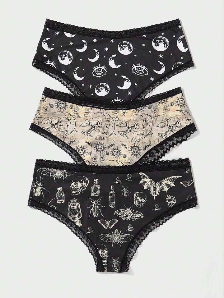 Academia Plus 3pack Moon & Skull Print Lace Trim Panty