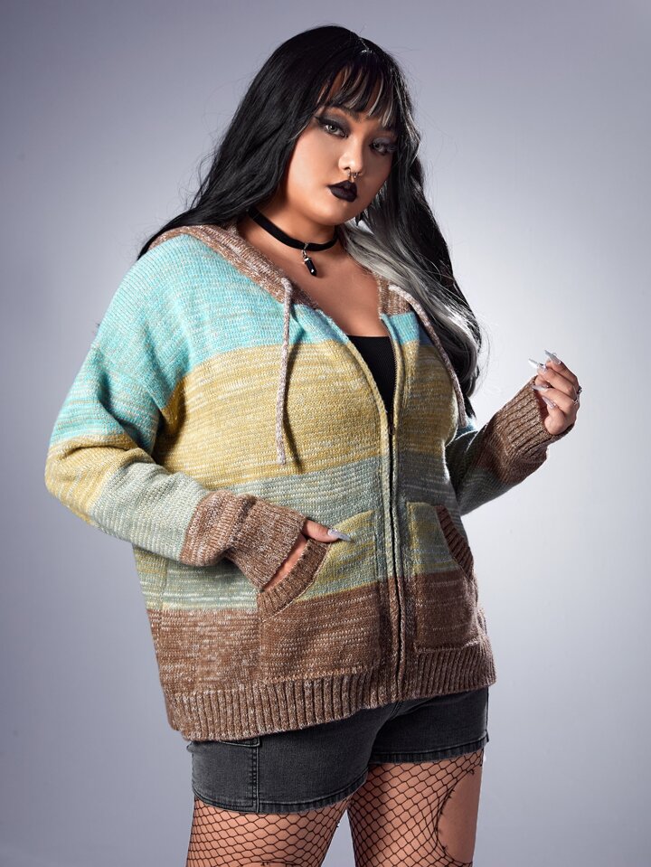 Academia Plus Space Dye Drop Shoulder Drawstring Hooded Cardigan