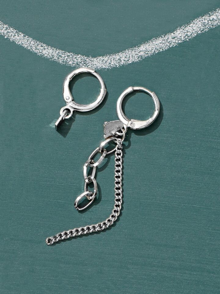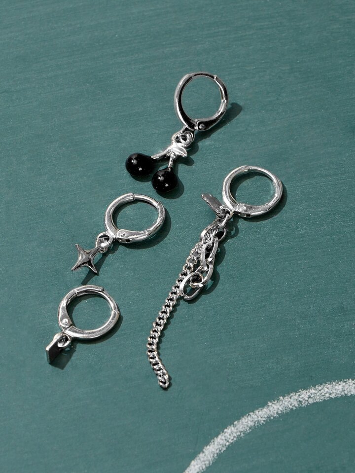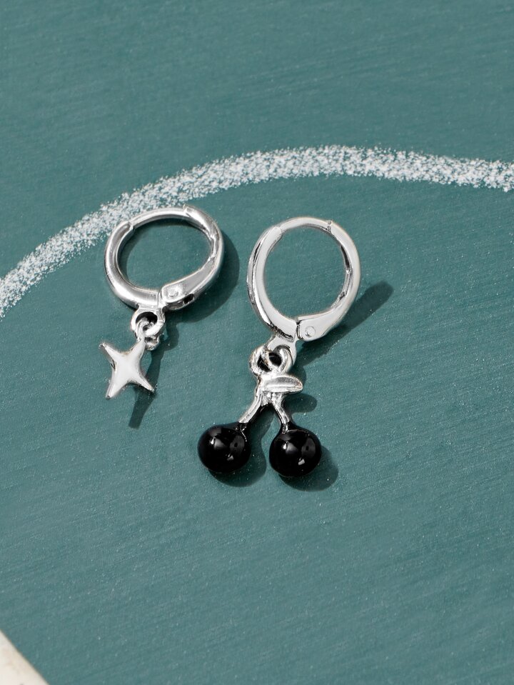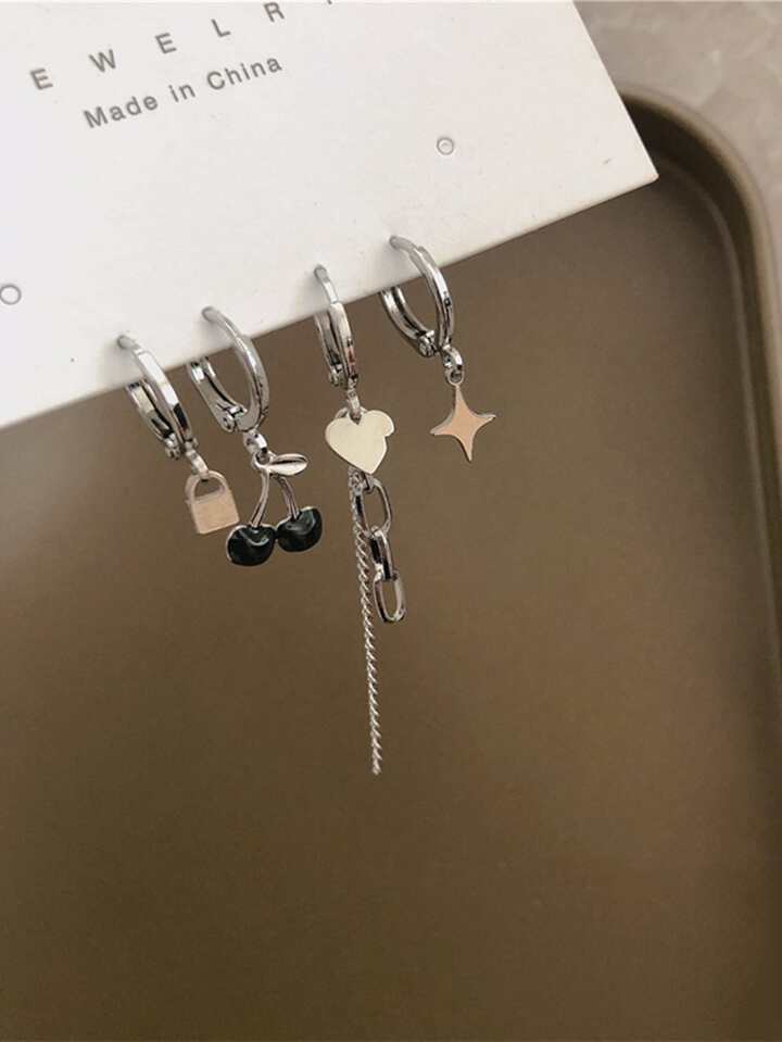 Academia Retro 4pcs Four-pointed Star & Heart Decor Mismatched Drop Earring