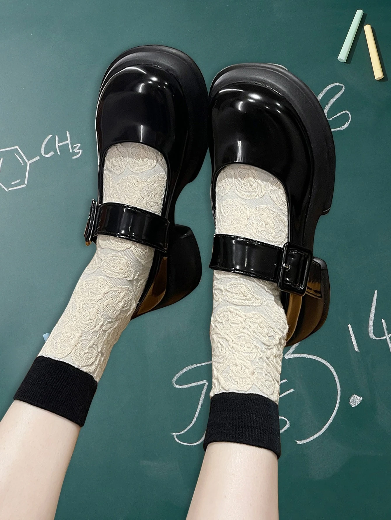 Academia Retro Buckle Decor Flatform Mary Jane Shoes