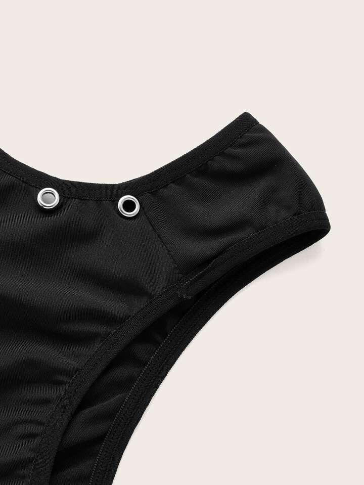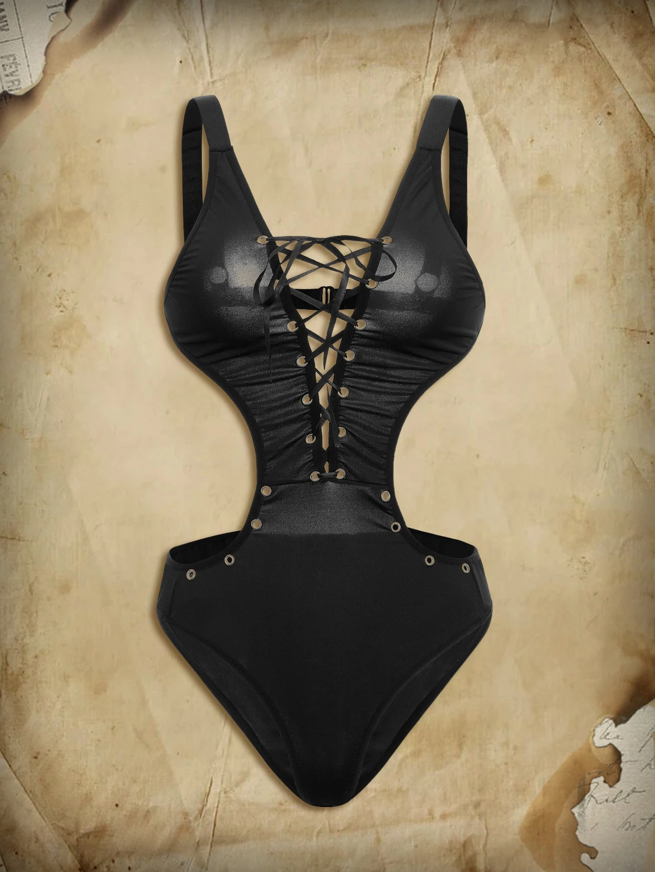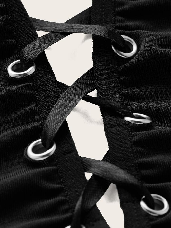 Academia Solid Lace Up Grommet Eyelet Teddy Bodysuit