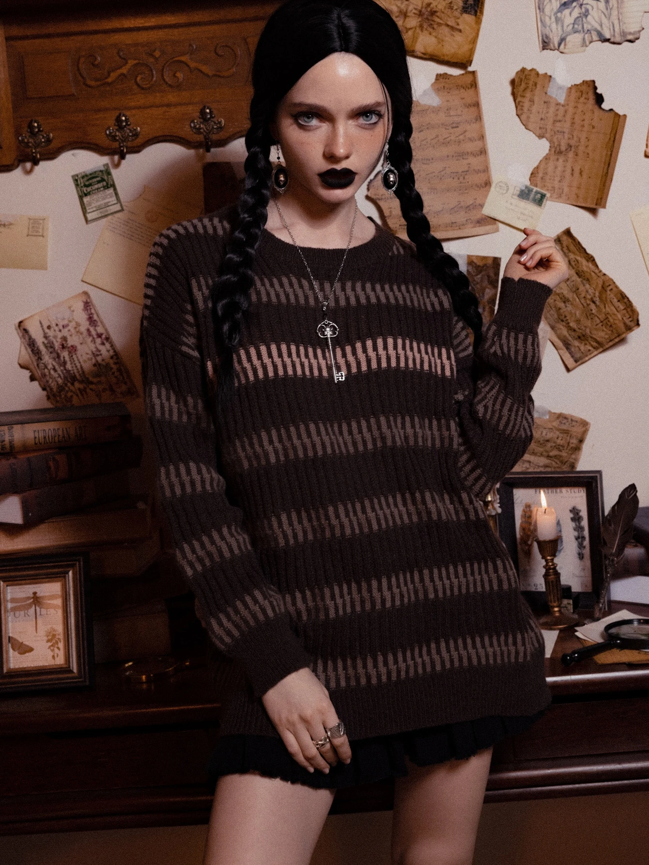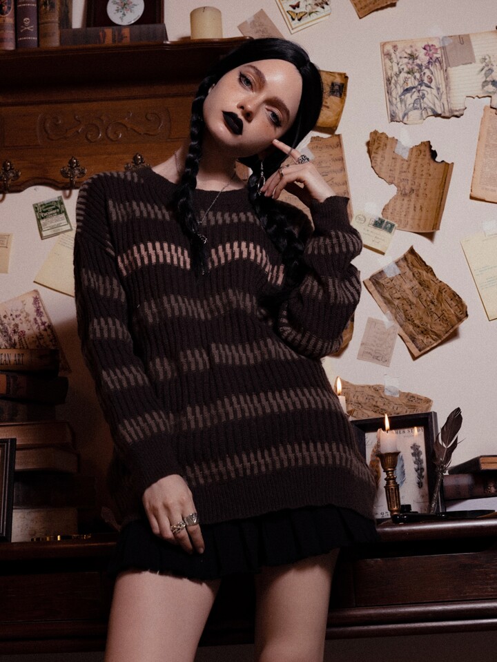 Academia Striped Pattern Drop Shoulder Sweater