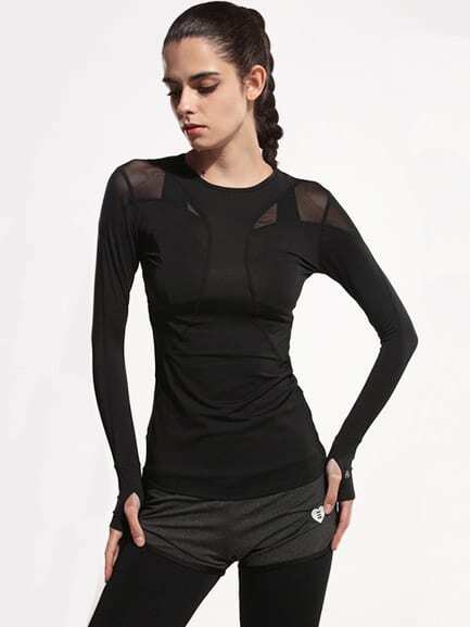 Active Mesh Paneled Gym T-Shirt With Thumb Holes