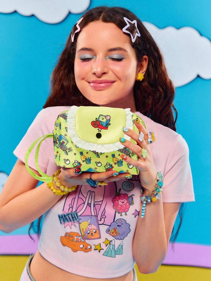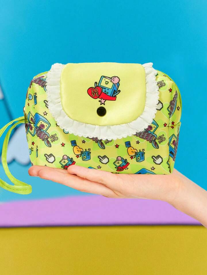 Adventure Time X ROMWE Cartoon Pattern Large Capacity Portable Cosmetic Organizer Makeup Bag