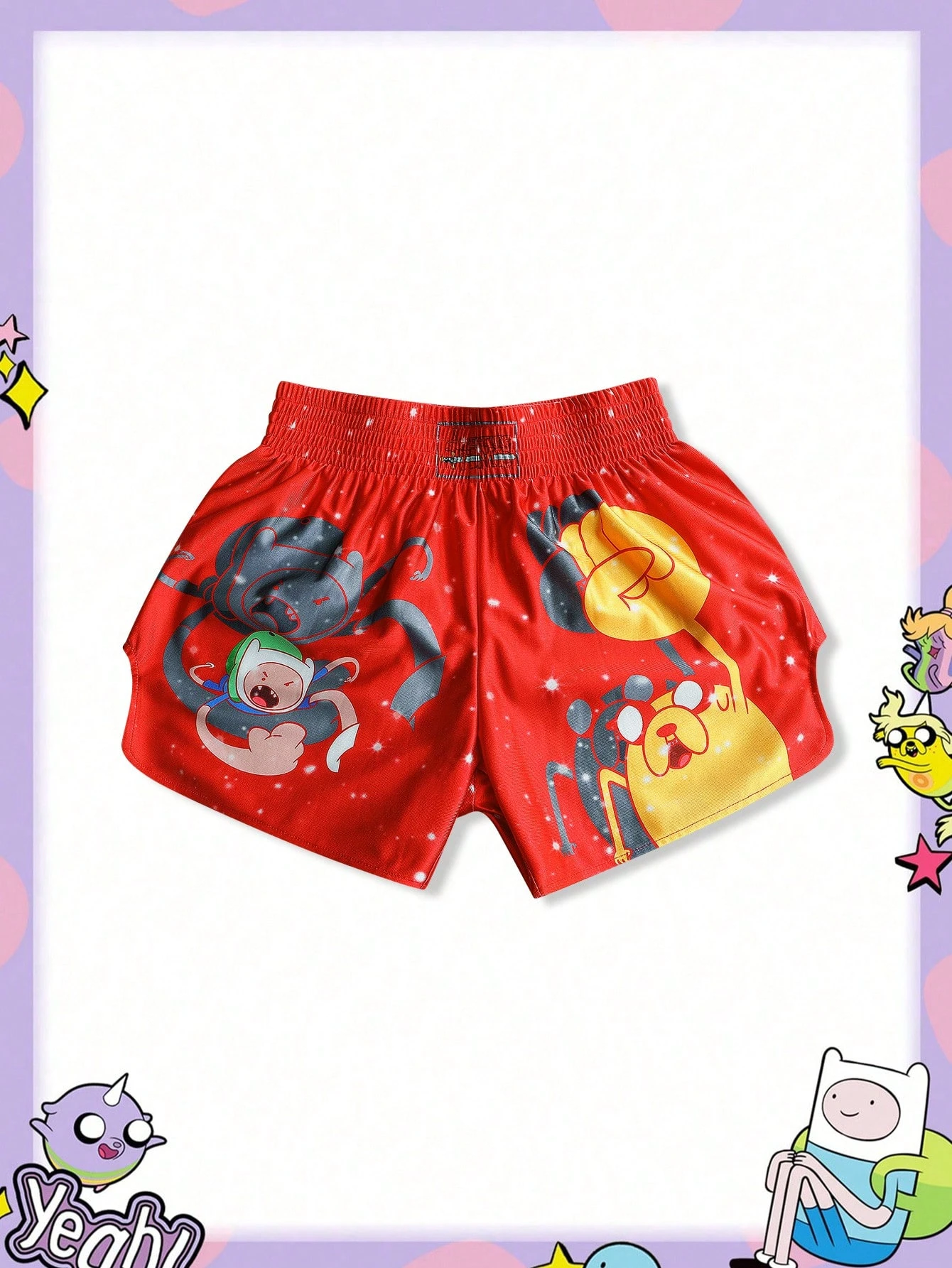 Adventure Time X ROMWE Men's Casual Sports Fashion Street Cartoon Graphic Drawstring Waist Loose Boxing Shorts