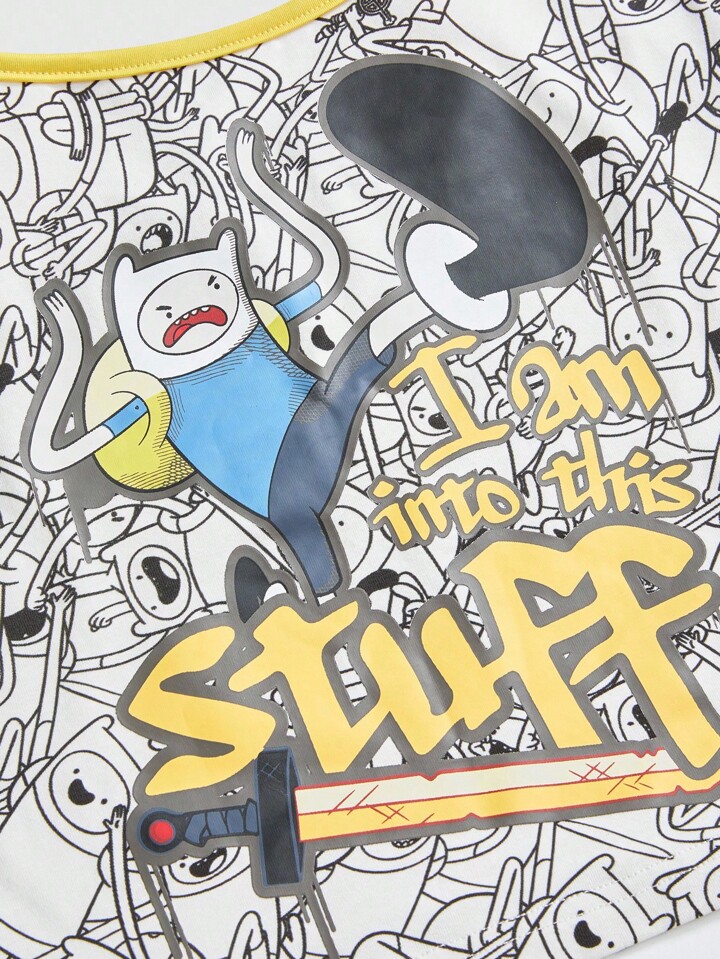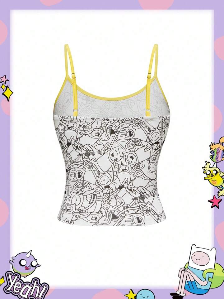 Adventure Time X ROMWE Women Cartoon And Letter Graphic Ringer Cropped Cami Top