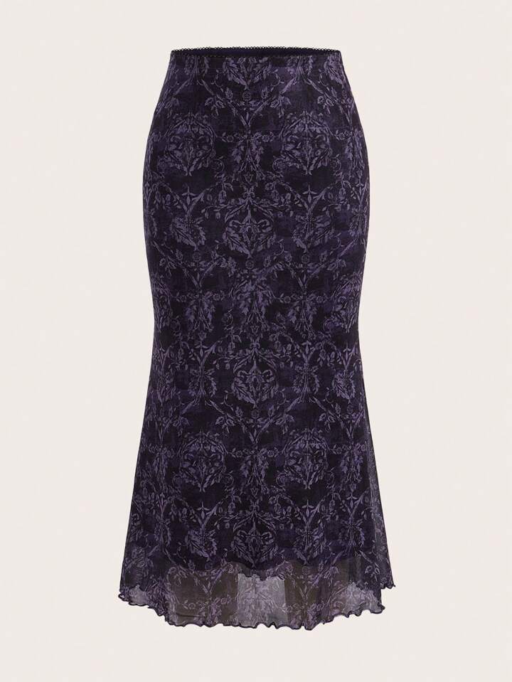 Allover Print Mermaid Hem Skirt Without Belt