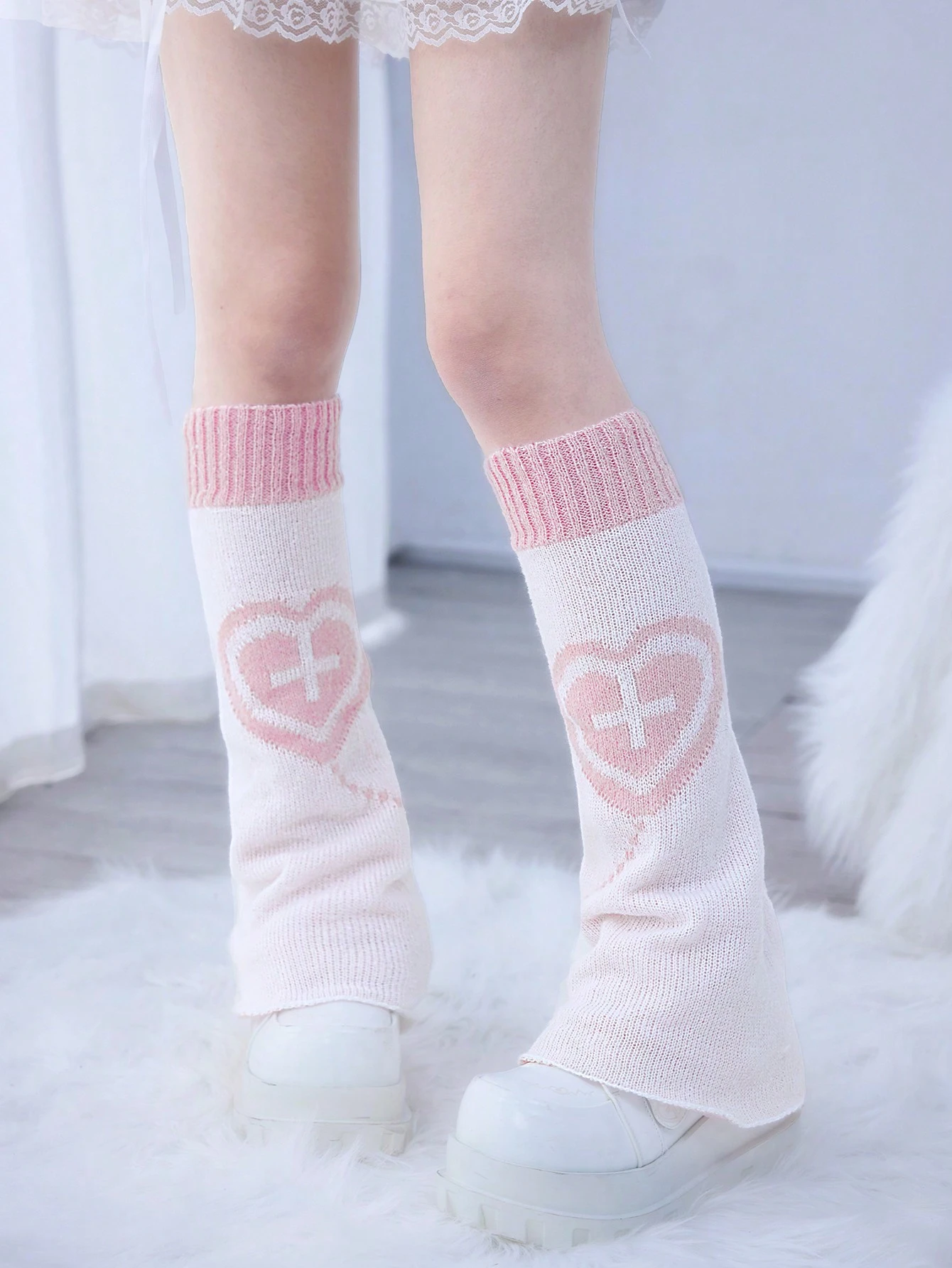 Anime 1 Pair Cute Trumpet Leg Warmers, Y2K Ribbed Leg Warmers, Lolita Heart & Cross Ankle Leg Warmers, Versatile Fashion Leg Warmers