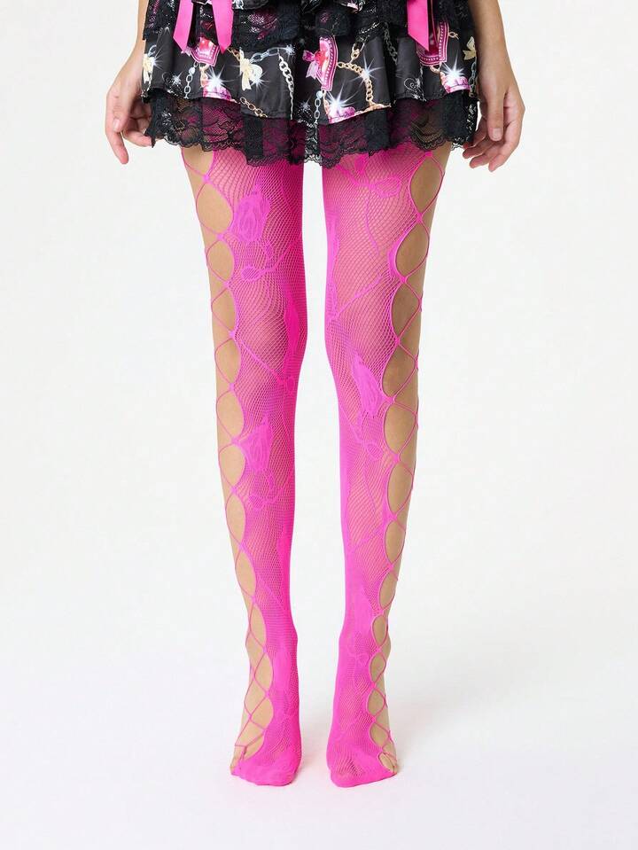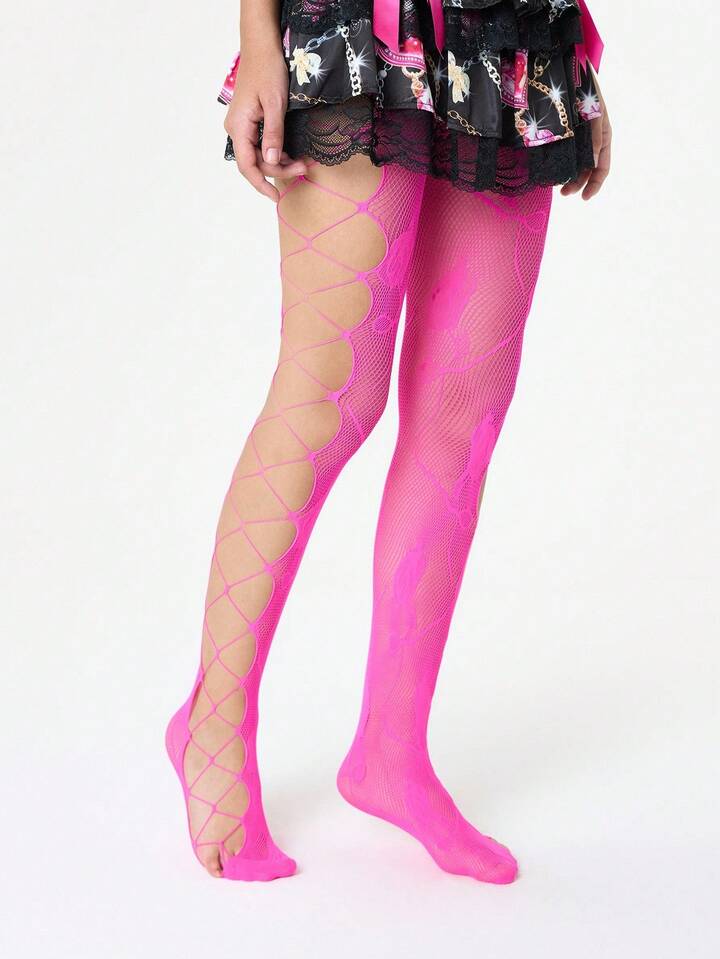 Anime 1 Pair Hot Pink Y2K Sexy Cutout Fishnet Leggings / Fishnet Tights / Open-Crotch Fishnet Pantyhose / Suspender Fishnet Stockings For Women