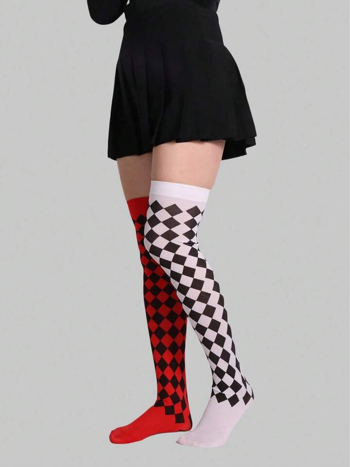 Anime 1 Pair Women Rhombic Pattern Over-The-Knee Socks, All Season