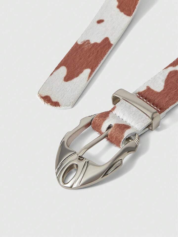 Anime 1pc Camel Retro Cow Print Metal Question Mark Decor Skinny Waist Belt, Fashion Minimalist Unisex Accessory Suitable For Daily, School, Date, Travel And More