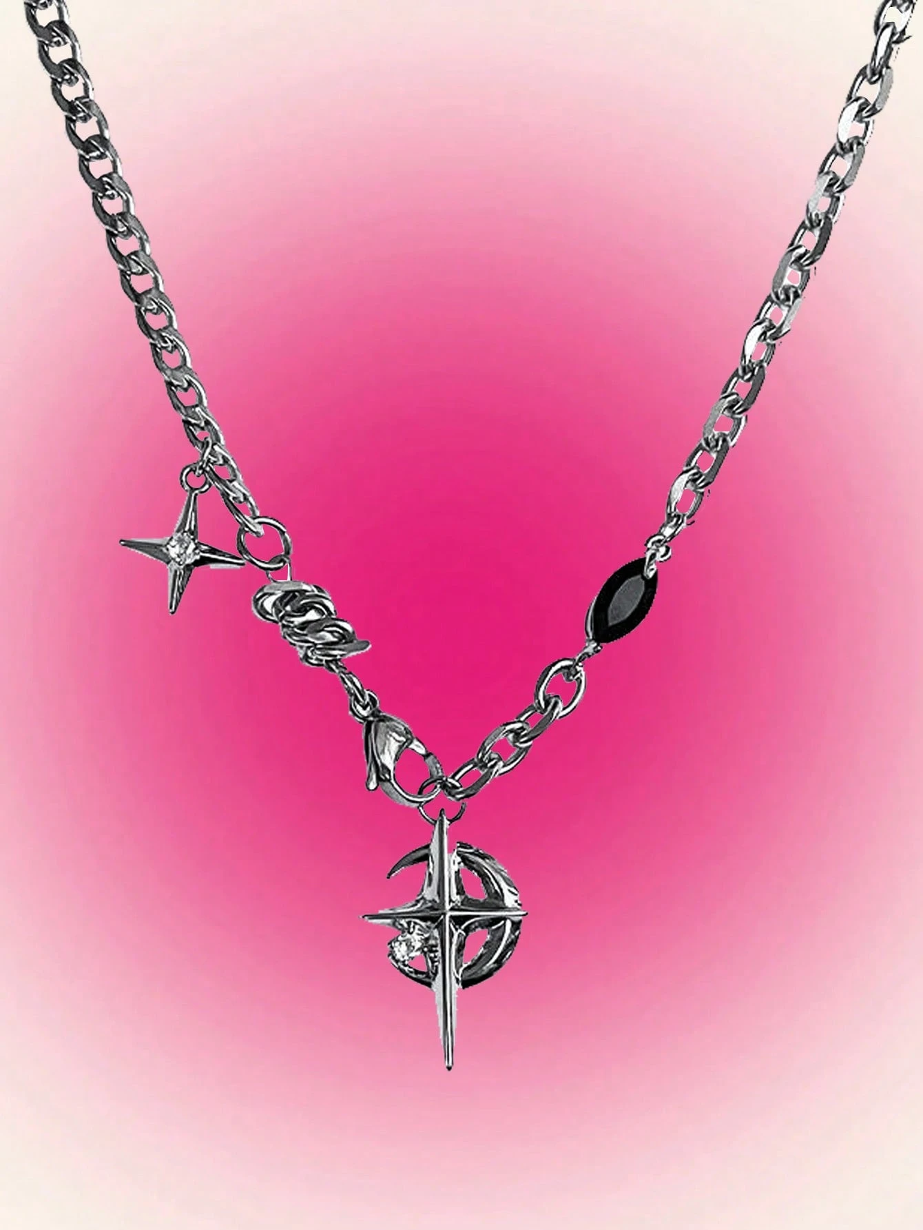 Anime 1pc Fashion Zinc Alloy Rhinestone Star Charm Necklace For Women For Daily Decoration