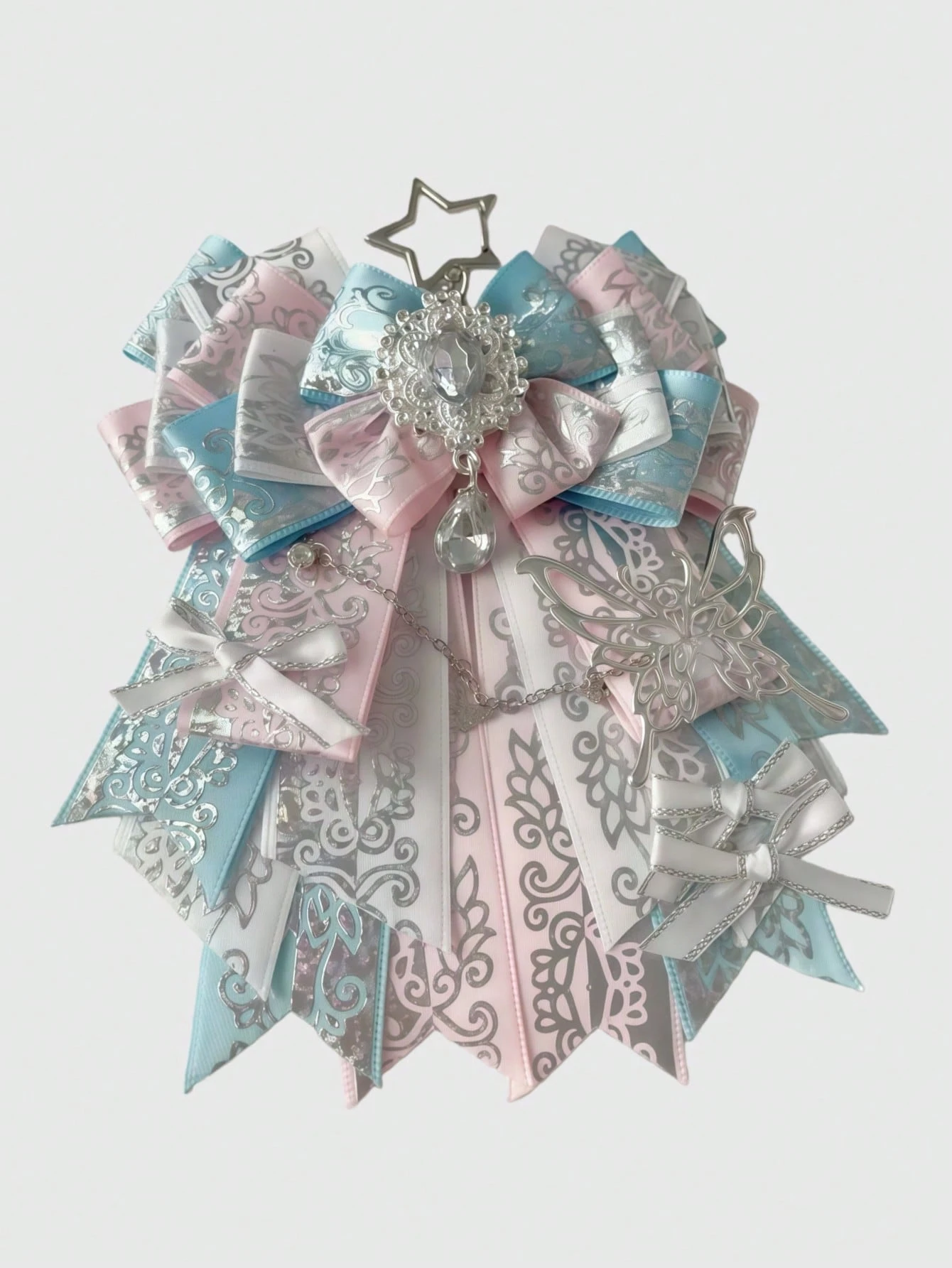 Anime 1pc Kawaii Sweet Cute Music Note Print Lace Patchwork 3D Wing Y2K Star Foil Print Bow Shaped Keychain & Keyring, Handmade Lolita Campus Card Holder Bag Charm