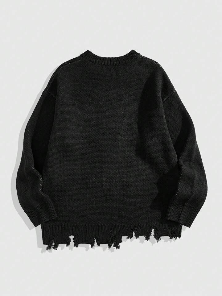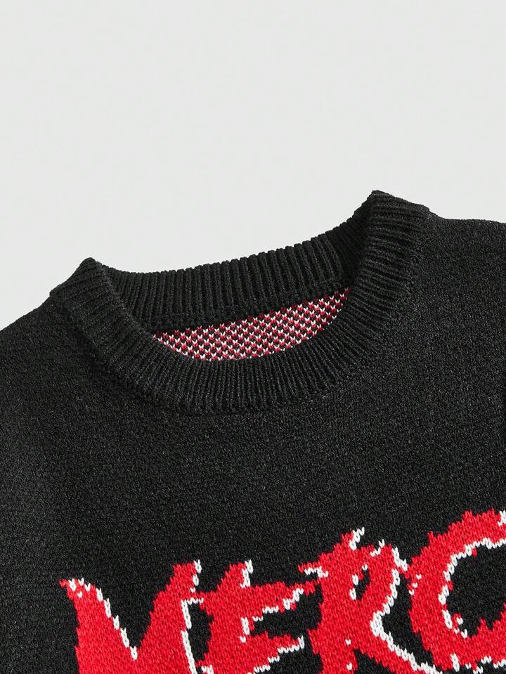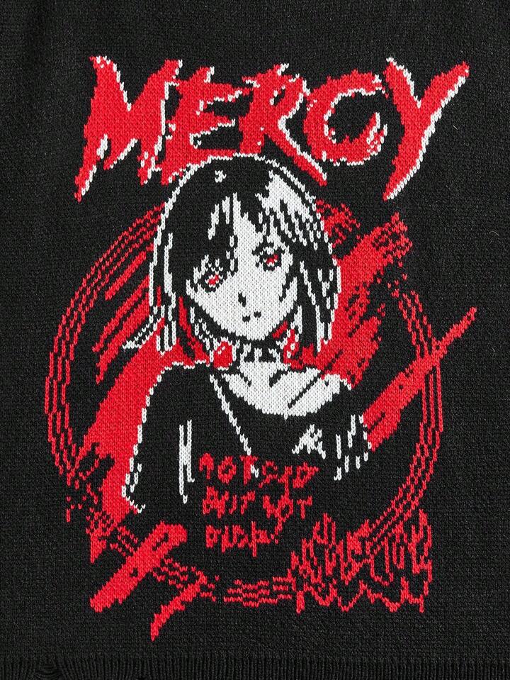 Anime 1pc Men's Casual Graphic Knit Round Neck Long Sleeve Pullover Top, Suitable For Everyday Wear