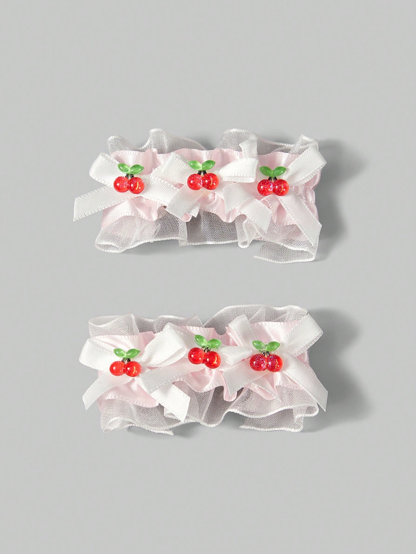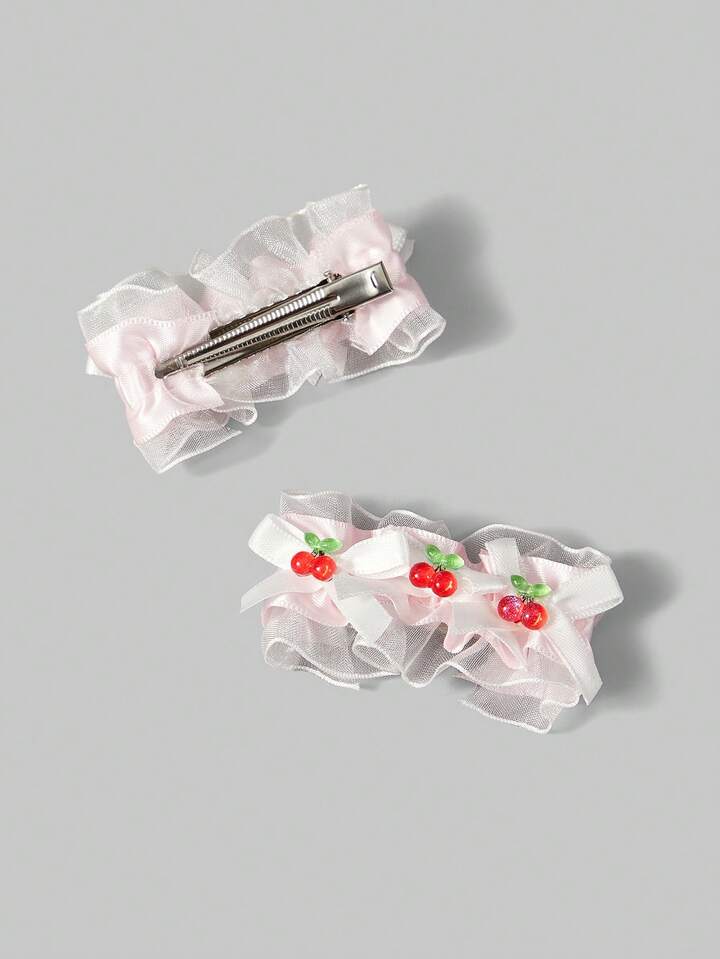Anime 2 Pieces Cute Cherry Lace Hairpins, Lolita Handmade Bow Duckbill Clips, Daily Design Hair Accessories Hairpins