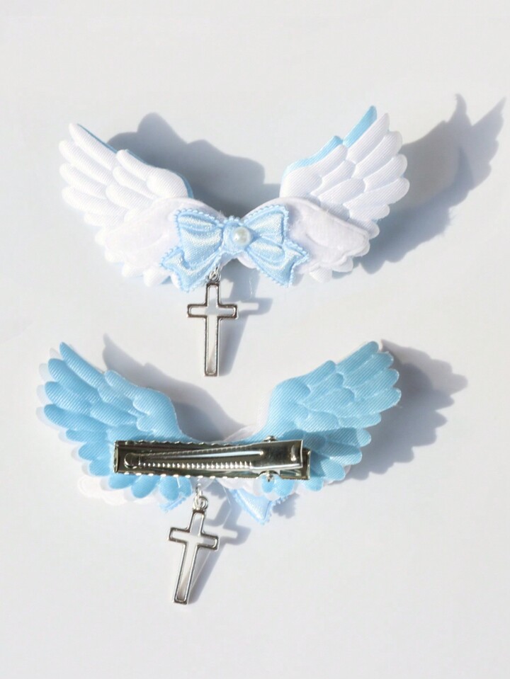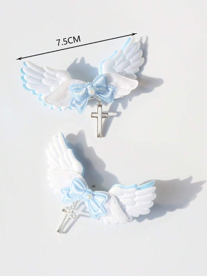 Anime 2pcs Hydrangea Color Landmine Series Hairclip With Wing, Cute & Versatile Lolita Fashion Accessory