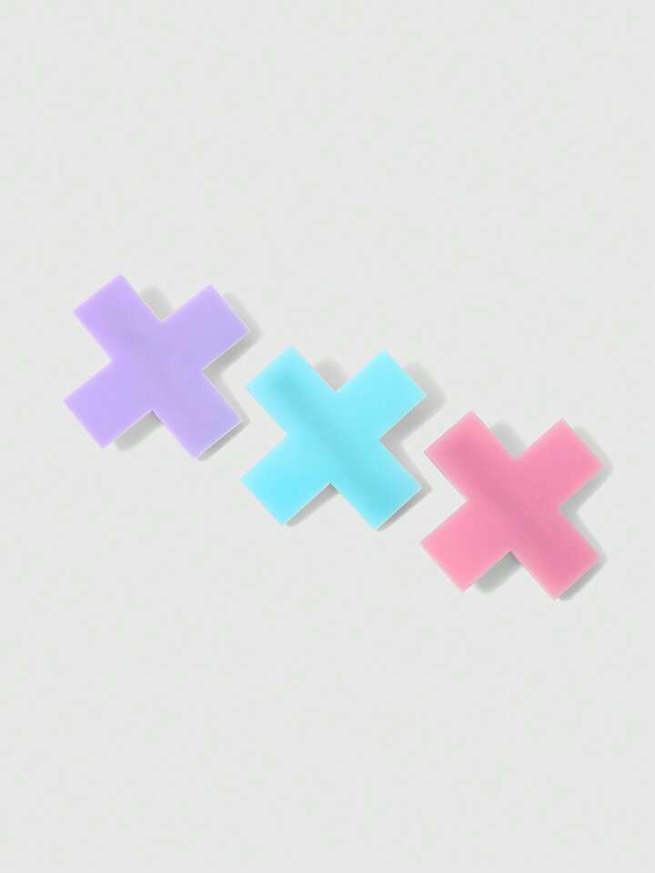 Anime 3pcs Random Color Colorful Cross-Shaped Hair Clips, Y2K Style Multicolor Alligator Clips, Artistic Hair Accessories Barrettes