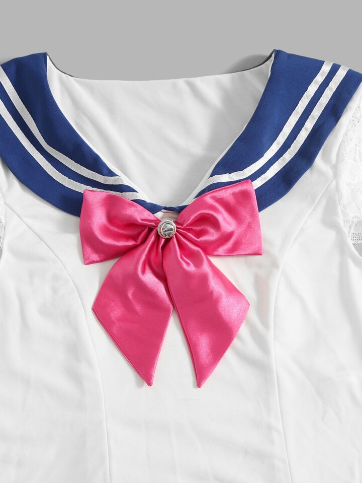 Anime 6pack Contrast Lace Bow Decor School Girl Costume Set