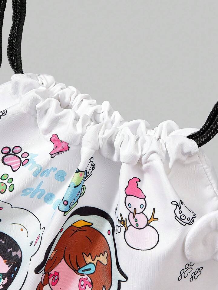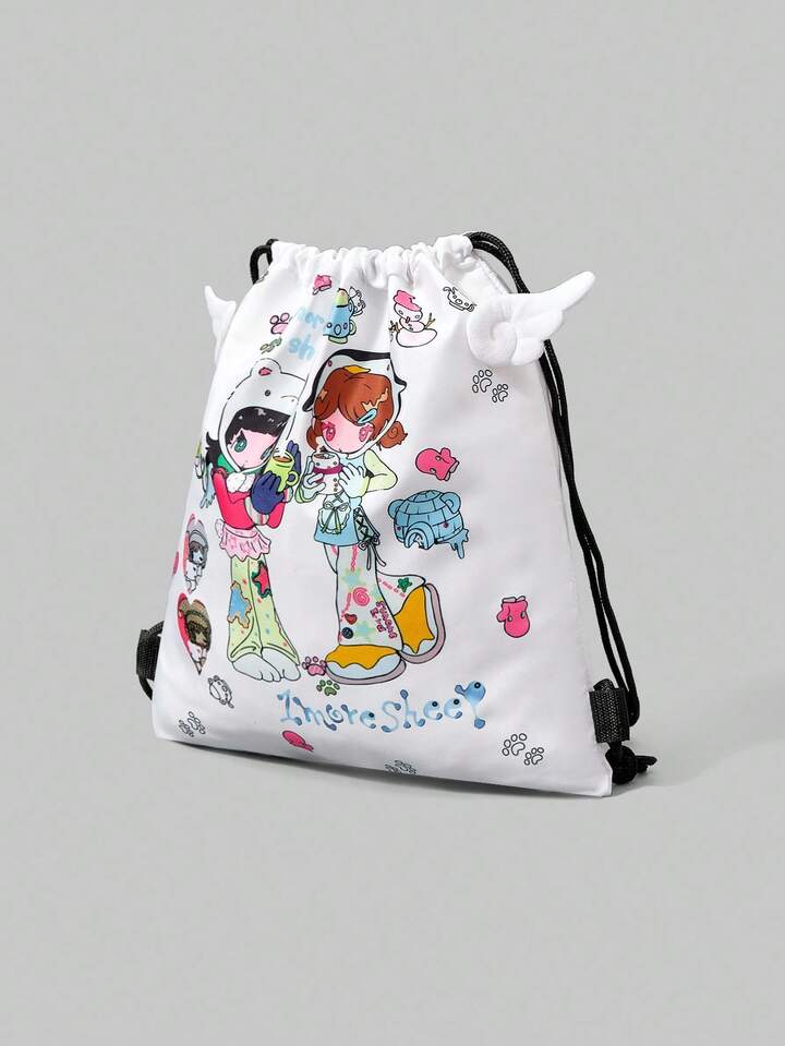 Anime Cute Backpack For Girls With Heart & Star Print, Transparent Pocket, Large Capacity, Drawstring Closure, Dual-Sided Design, Suitable For School, Commute, Casual Daily Wear