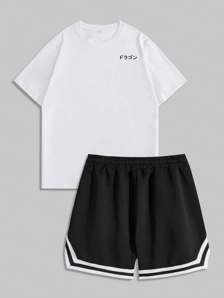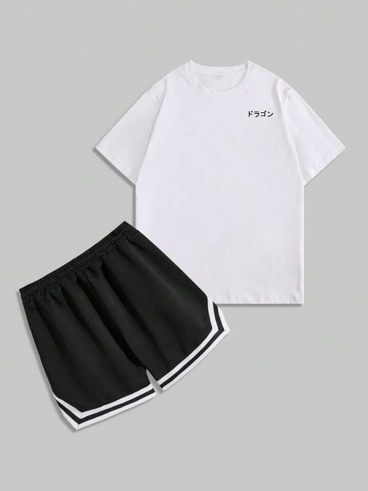 Anime Fashion Dragon Sports 2-Piece Outfit T-Shirt & Shorts Set For Men